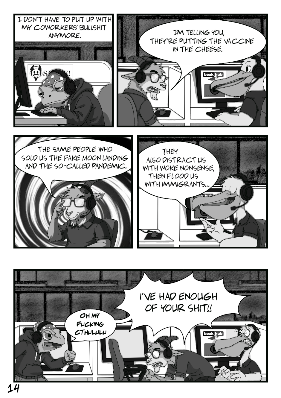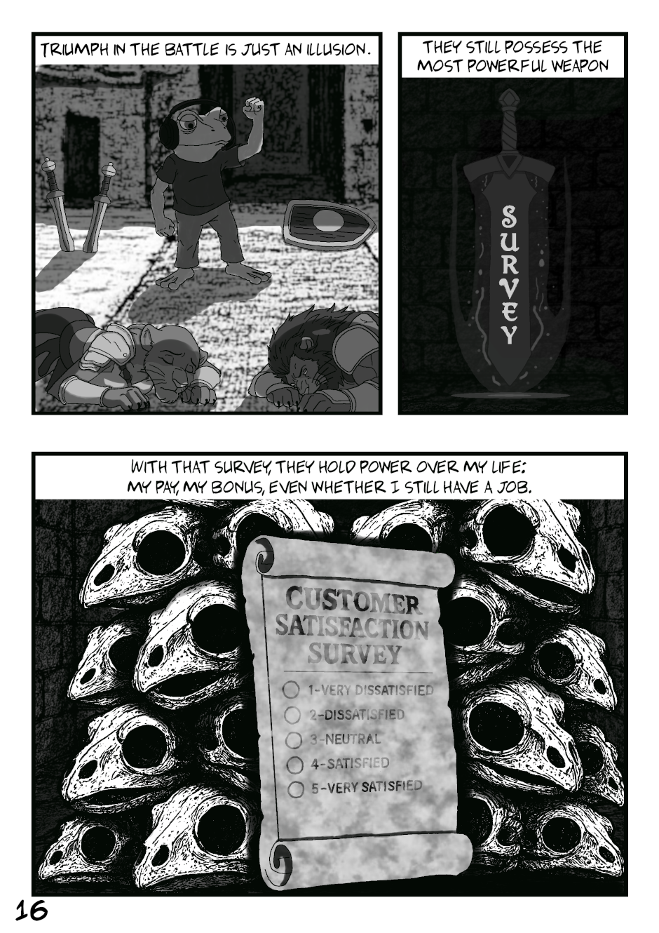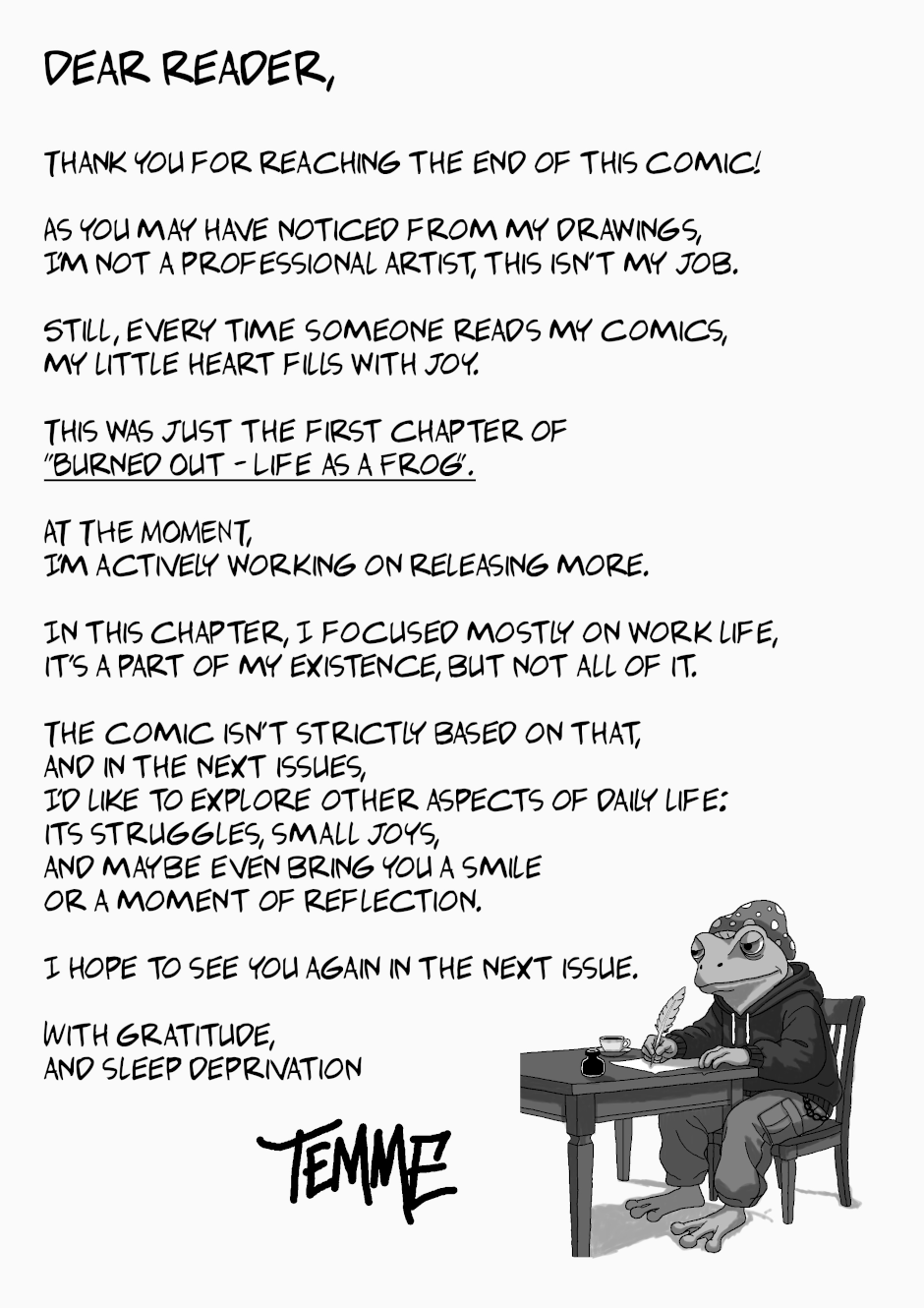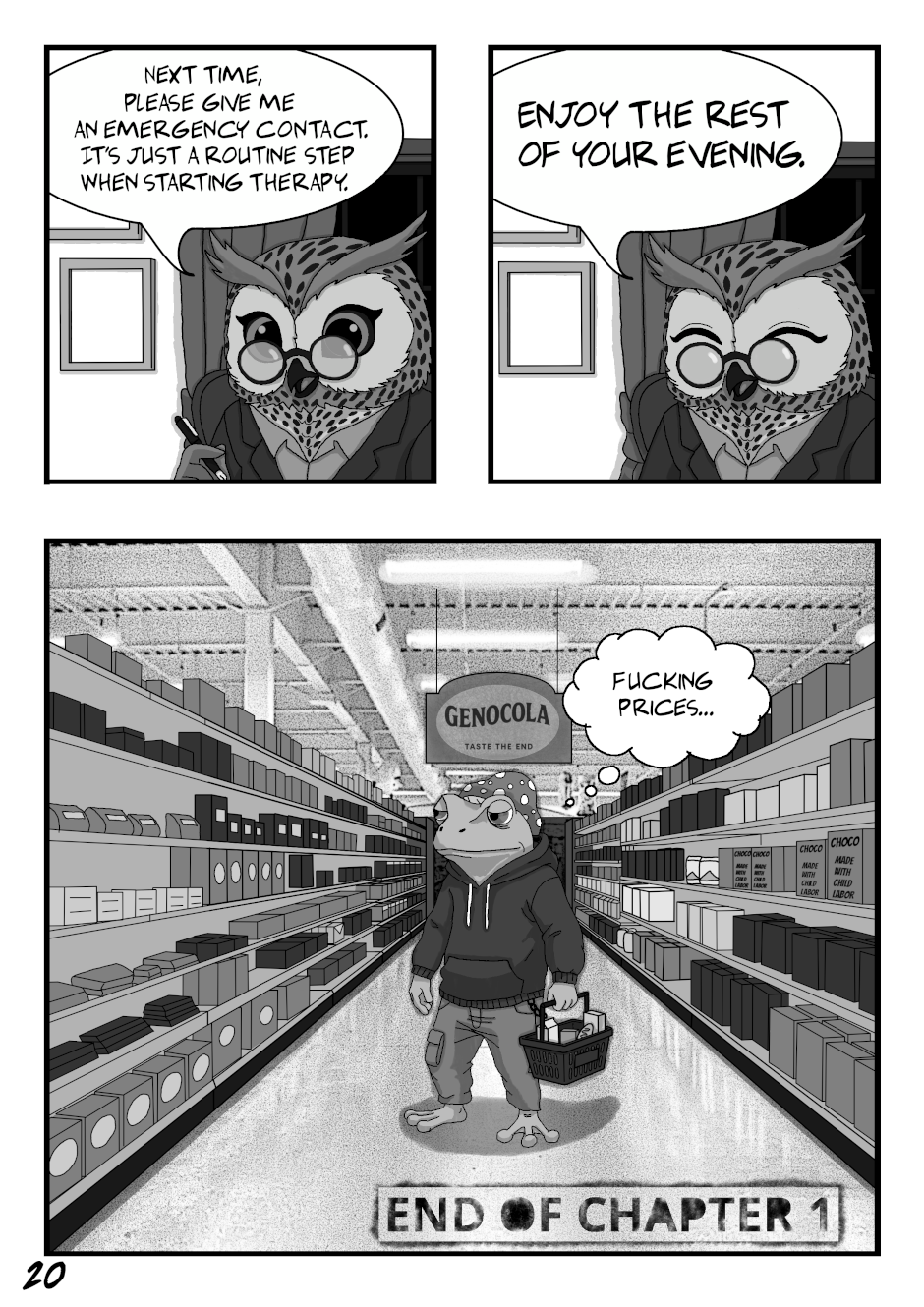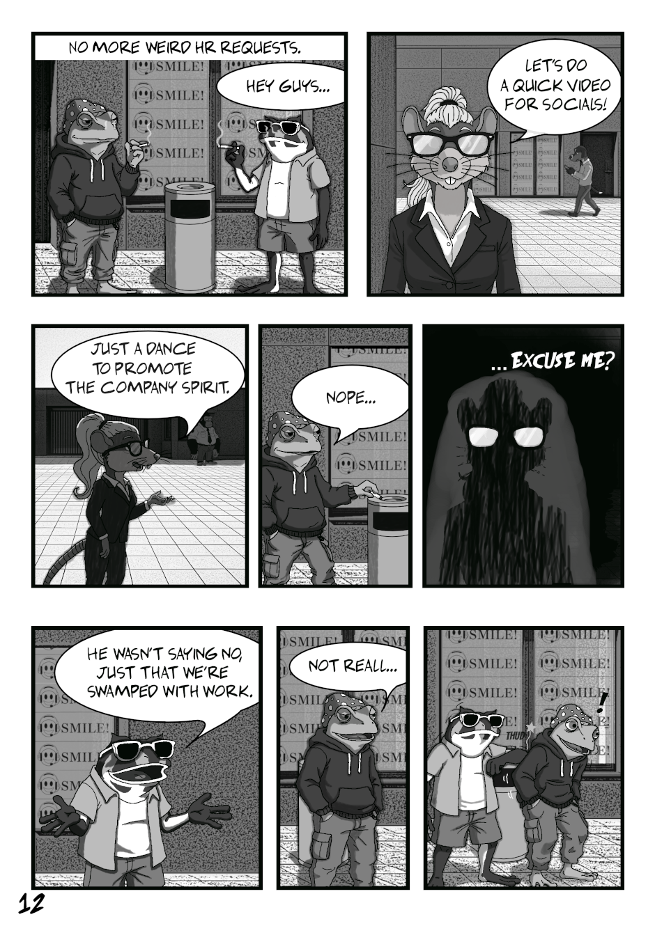 A dark slice of life comic weaving humour, melancholy, and quiet despair into absurd realism.