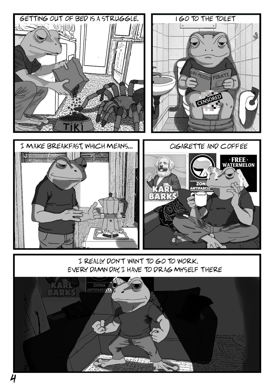 A frog in his mid-thirties drifts through another day.