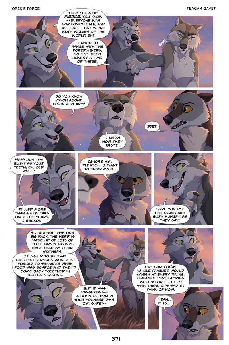 For only $5 on Patreon you can read 10+ pages ahead into Volume Three, see work-in-progress posts, read both Oren and the One-Eyed Wolf and another short side comic (about bison!) called RUN.