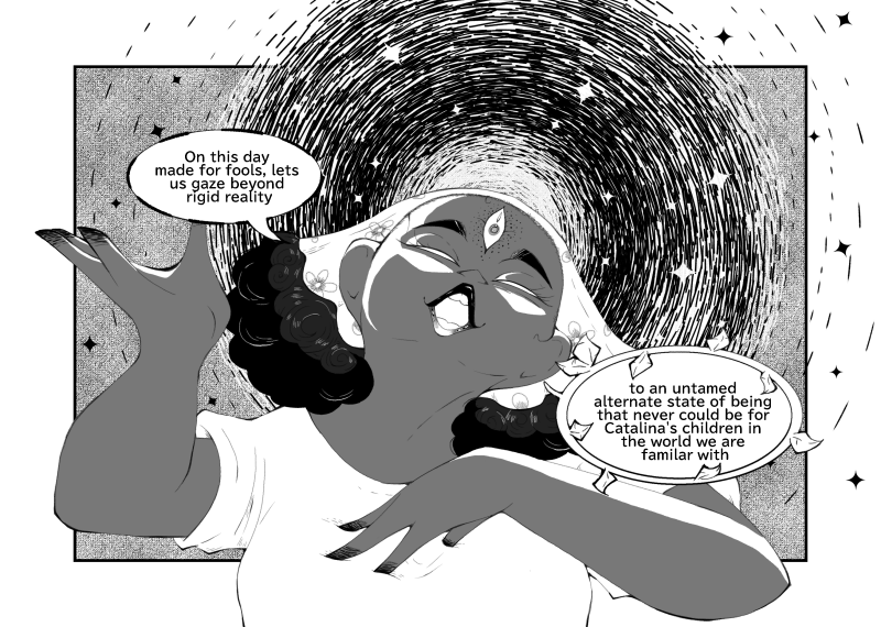 That lady in the introduction panel? That's just a sona. Not related to an au at all. She's not really canon to anything.
