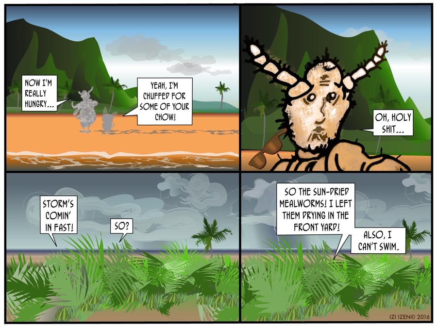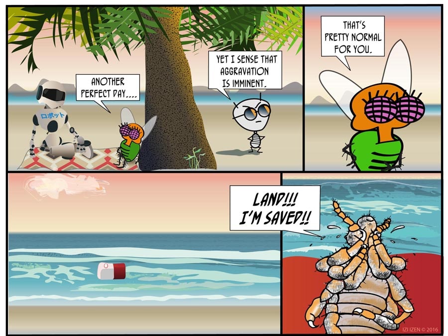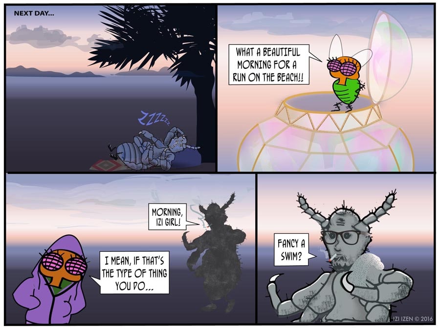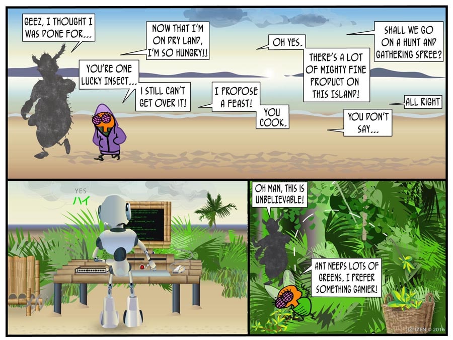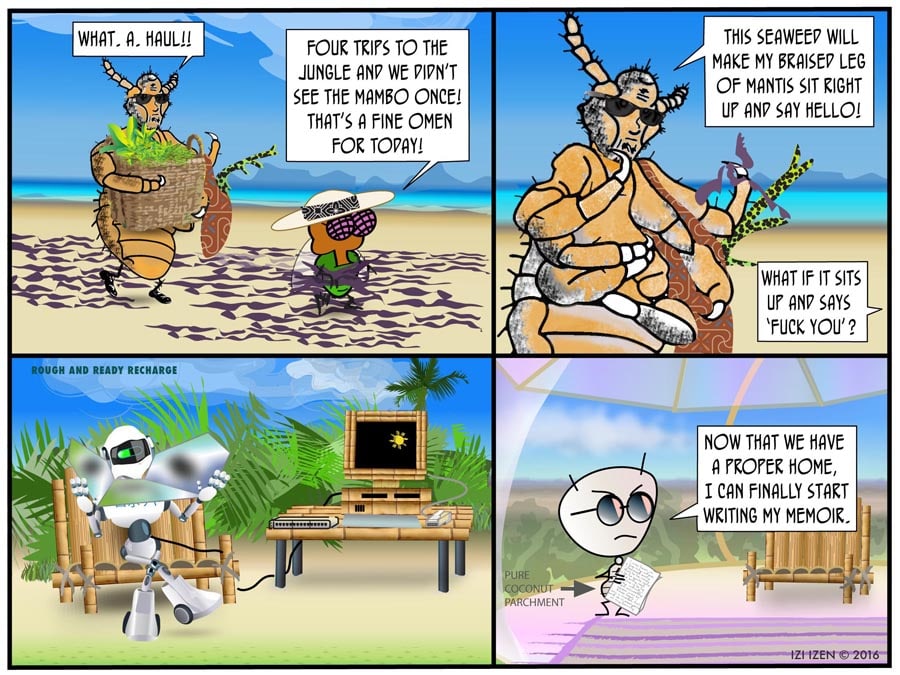 Izi and Co. give up their condo in the city to become "Globe-stas", and wind up on an island, who knows where... In THE BUBBLE CRISIS, Izi tries to humor Ant with a lavish gift which turns out to have some pretty unintended consequences...