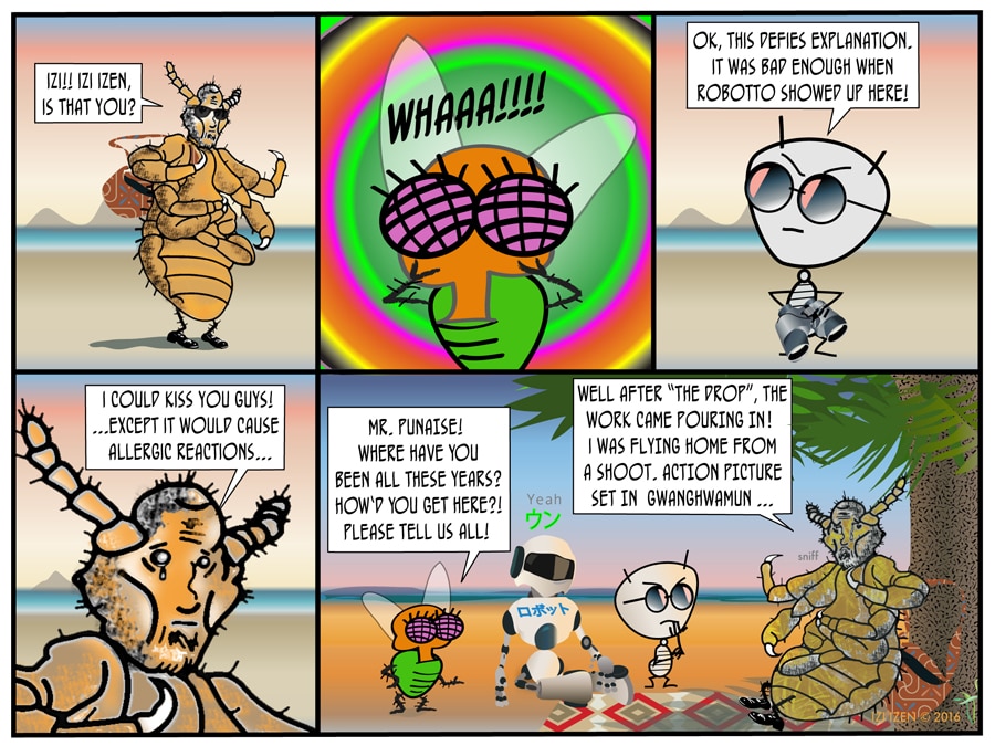 Yep, the Bedbug's Back! But this is no ordinary bedbug - this is Punaise, the A - lister Chef de Cuisine, Actor of no small repute, and Izi's one-time boxing trainer! Izi and Co. forgo lunch as all hell breaks loose in:
