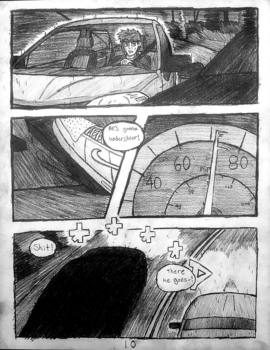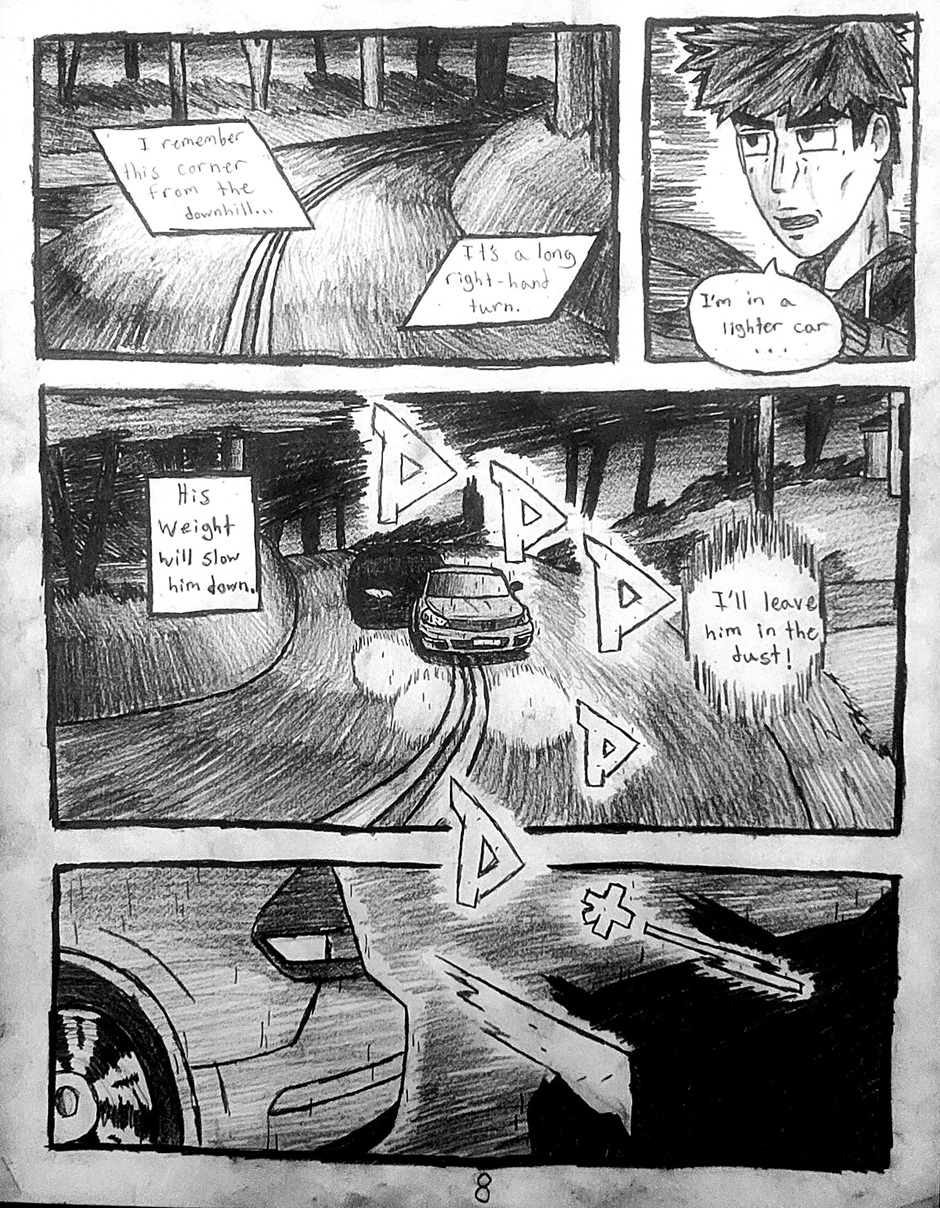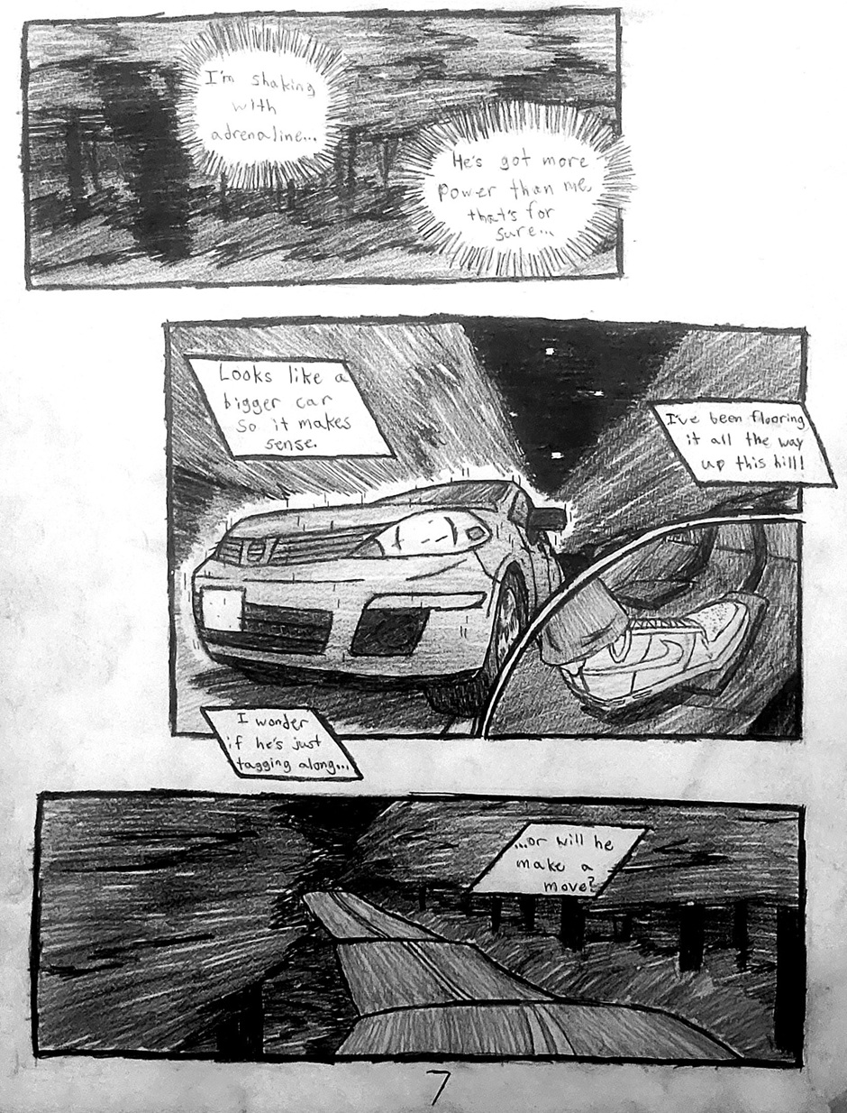High schooler Aedan Taylor has always been into cars. Going to car meets, watching events, even sim racing. But he has never had the resources to experience the true rush of the street... Until one night, he's able to express what he has built up for years. This school year has slingshot Aedan into the nocturnal racing scene, and he's excited to see where this path will take him. Experience the true nature of street racing, speed, anxiety, and hard love in this hand-drawn comic, Streak.