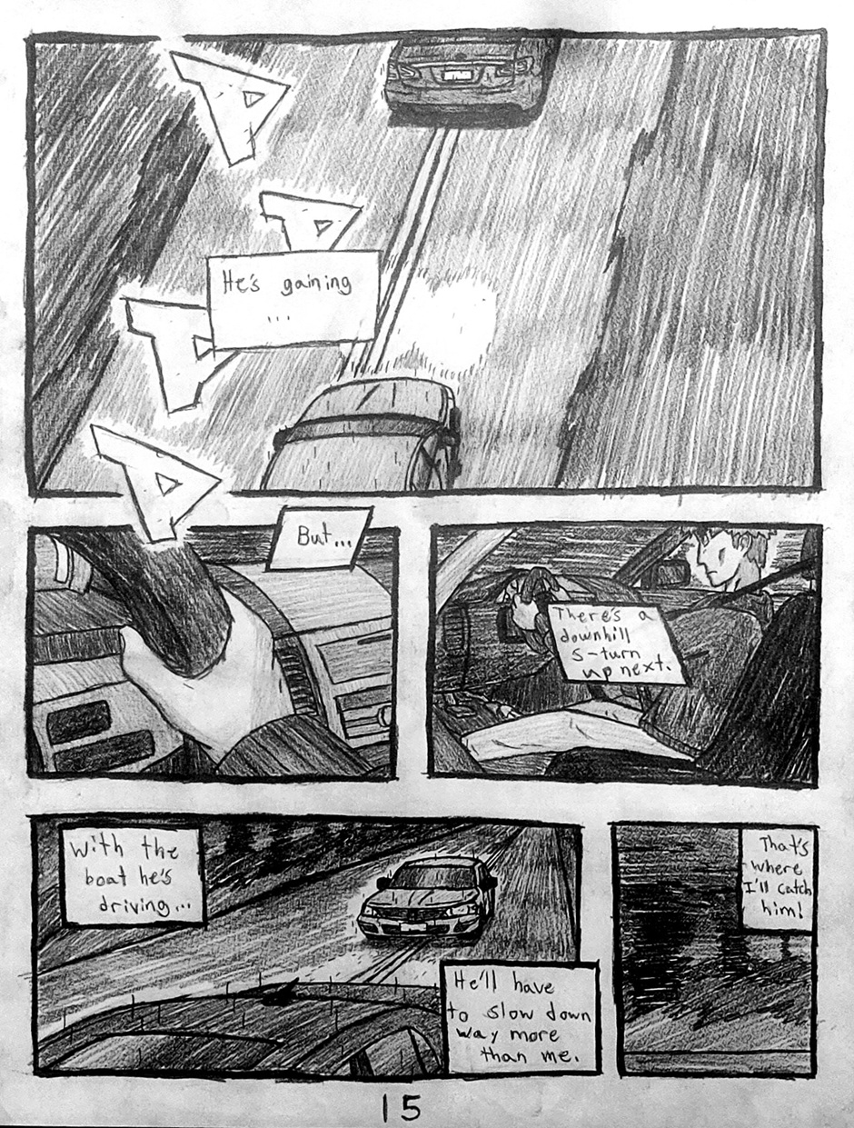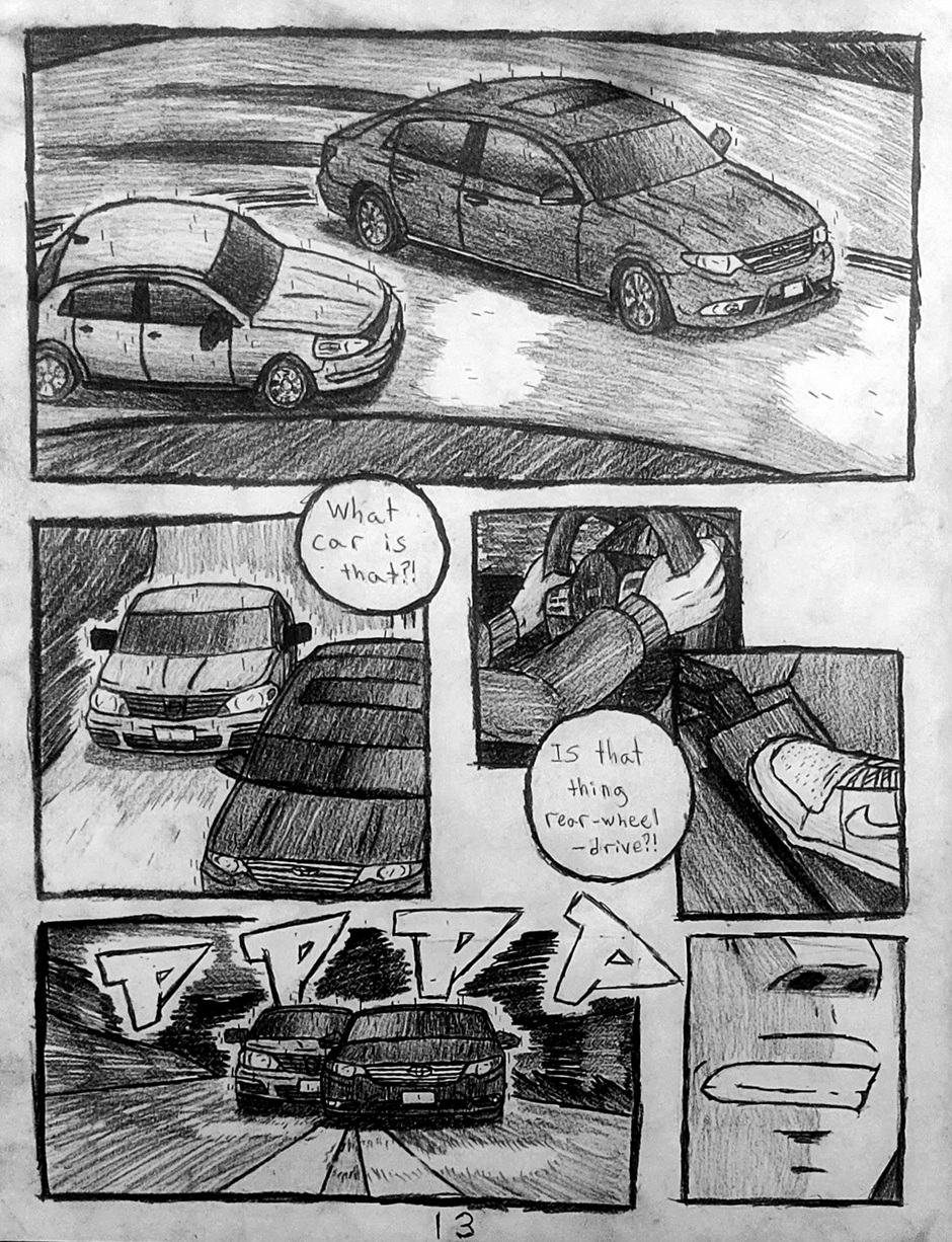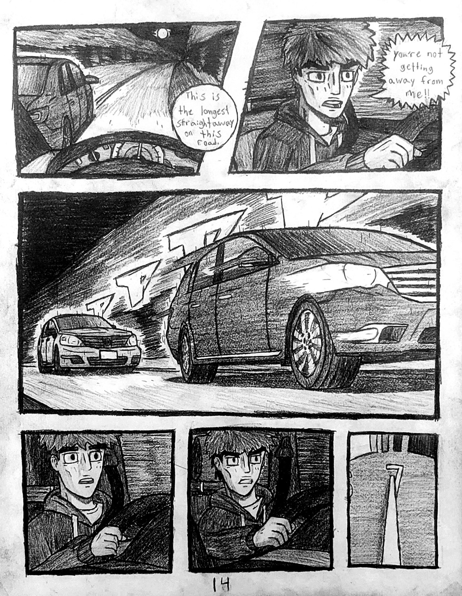 High schooler Aedan Taylor has always been into cars. Going to car meets, watching events, even sim racing. But he has never had the resources to experience the true rush of the street... Until one night, he's able to express what he has built up for years. This school year has slingshot Aedan into the nocturnal racing scene, and he's excited to see where this path will take him. Experience the true nature of street racing, speed, anxiety, and hard love in this hand-drawn comic, Streak.