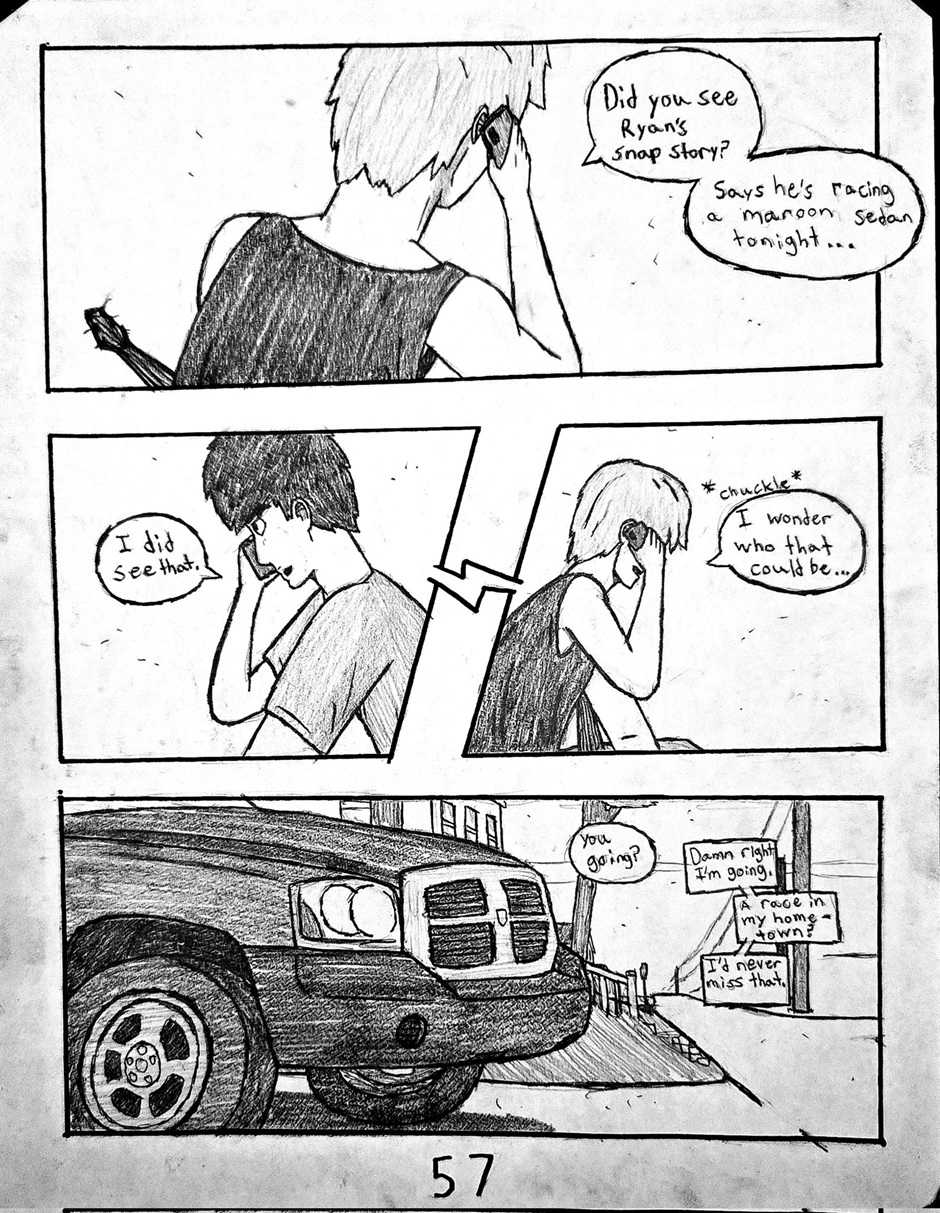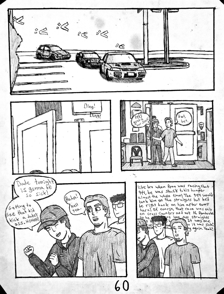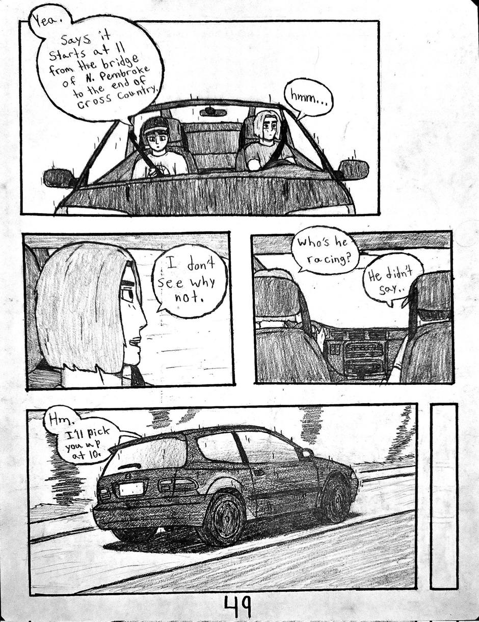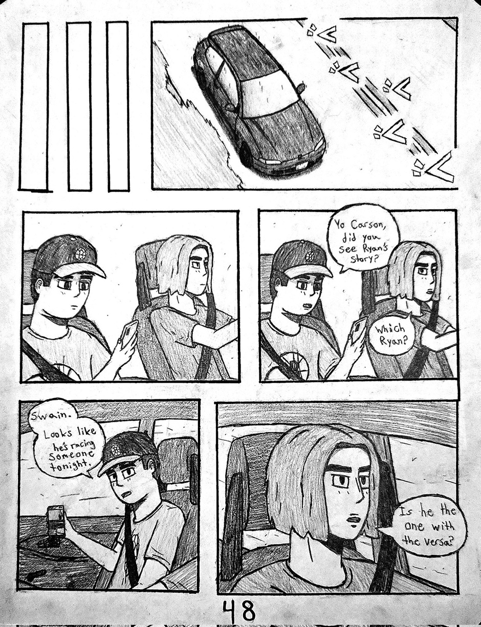 High schooler Aedan Taylor has always been into cars. Going to car meets, watching events, even sim racing. But he has never had the resources to experience the true rush of the street... Until one night, he's able to express what he has built up for years. This school year has slingshot Aedan into the nocturnal racing scene, and he's excited to see where this path will take him. Experience the true nature of street racing, speed, anxiety, and hard love in this hand-drawn comic, Streak.