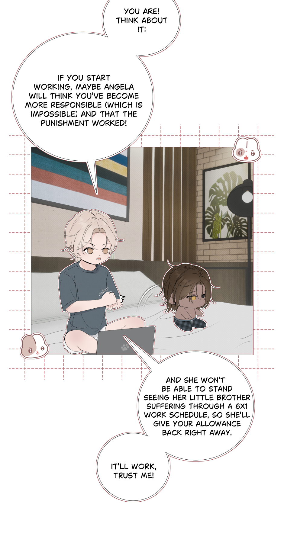 Luca is a Beta – somewhat peculiar – spoiled and accustomed to privileges, whose world crumbles when her allowance is cut off due to her irresponsibility. To regain his luxuries, he needs to find a job, but what he didn't expect was to fall in love with his boss, Natanael, an alpha 12 years older than him.