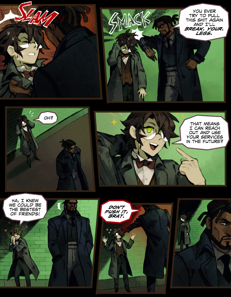 HAYDEN’S NOTES is a magic realism mystery with horror elements, set in the fictional country in the first half of the 20th century. The comic’s told in the non-chronological order revolving around Hayden Carter, immortal (by accident) gray mage, pursuer of knowledge and a witty nuisance for everyone around.
