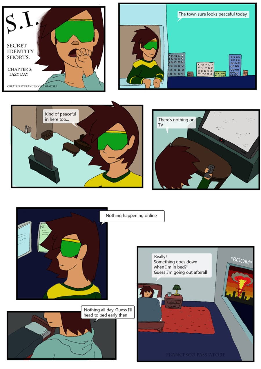 How typical. Hate when I go to bed and then the city needs saving ;) Joking ^^ You comic is fun! :)