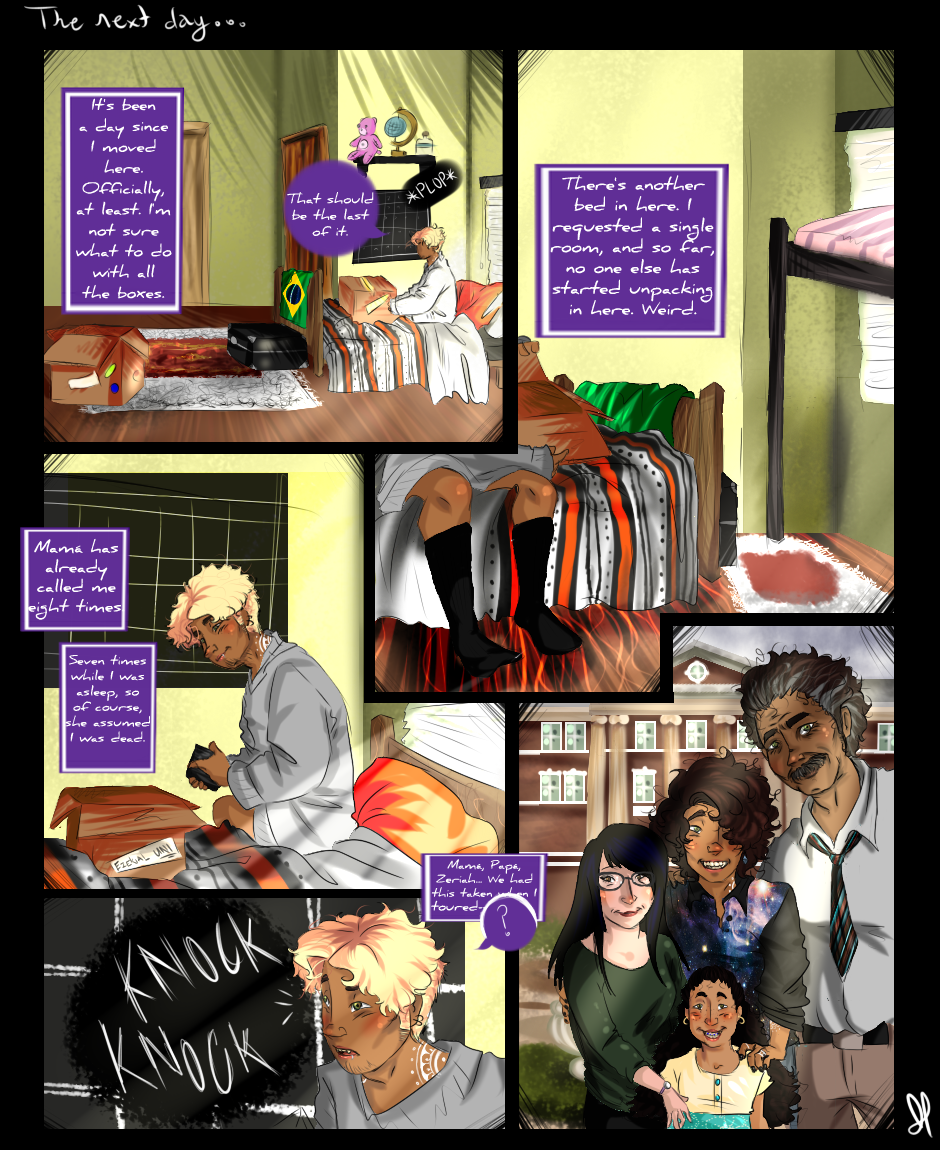 Finally getting a grip on how to do backgrounds and consistency with characters and their faces and what not. Hopefully soon it will not look like a third-grader is drawing this...