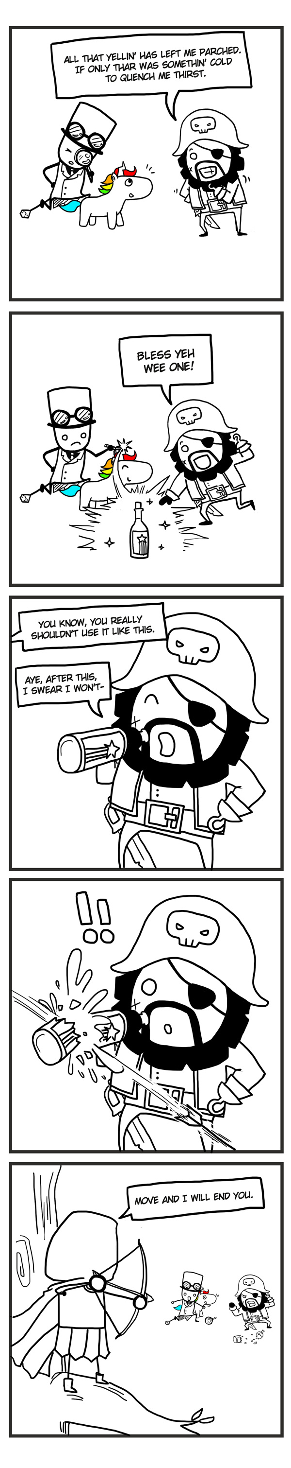 “It is a known fact that rainbows are simply an optical illusion, a result of light reflecting and refracting in teeny, tiny water droplets that hang about in our atmosphere. But here among the peaks of the Stonebutter Mountains, the birth of a rainbow is a far more complicated and magical affair.”