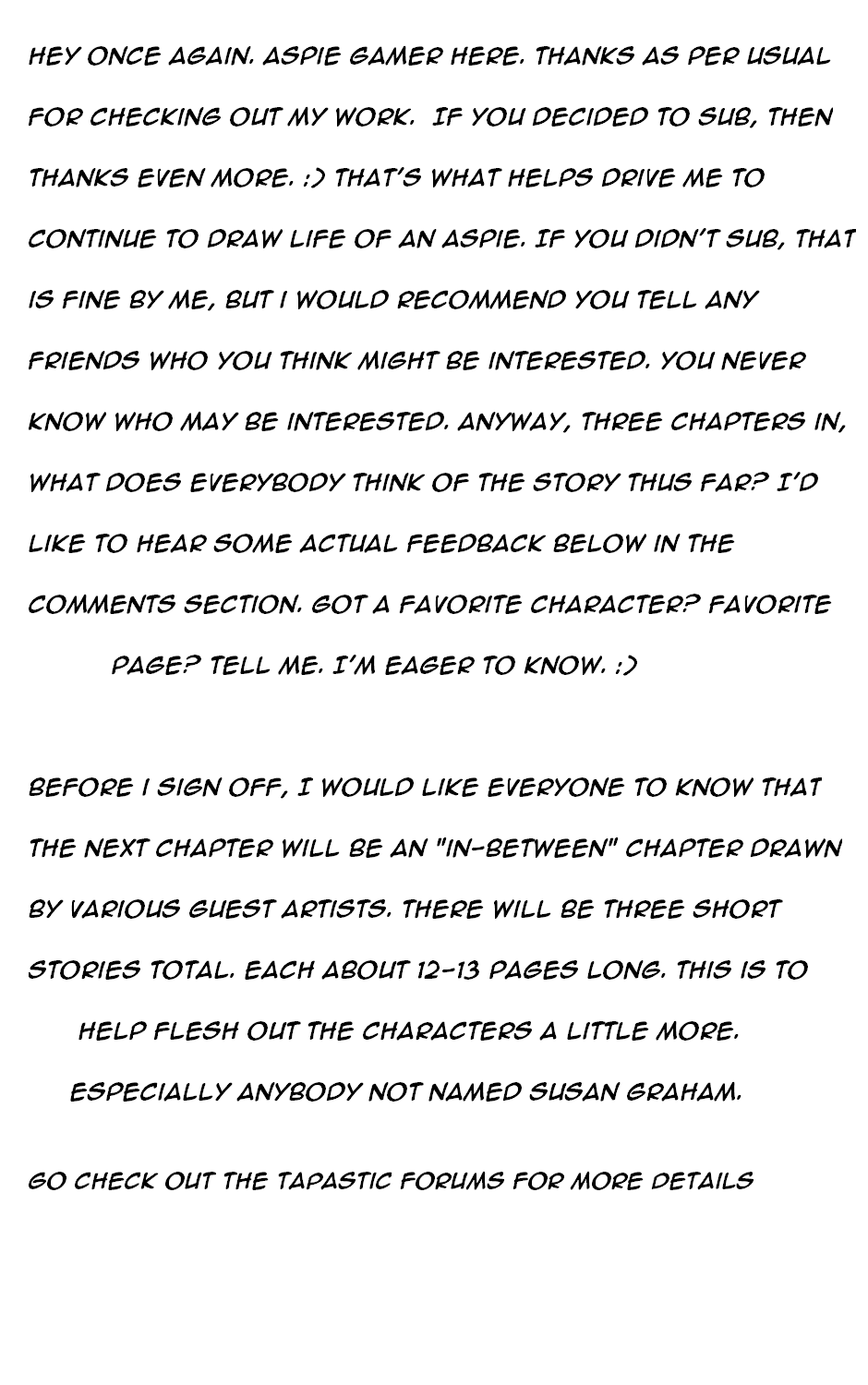 Vowing to swear off men during her high school years, Susan is determined to keep to this goal...so long as her asperger's lets her.