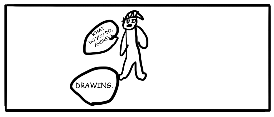 Andrey tries to draw anime