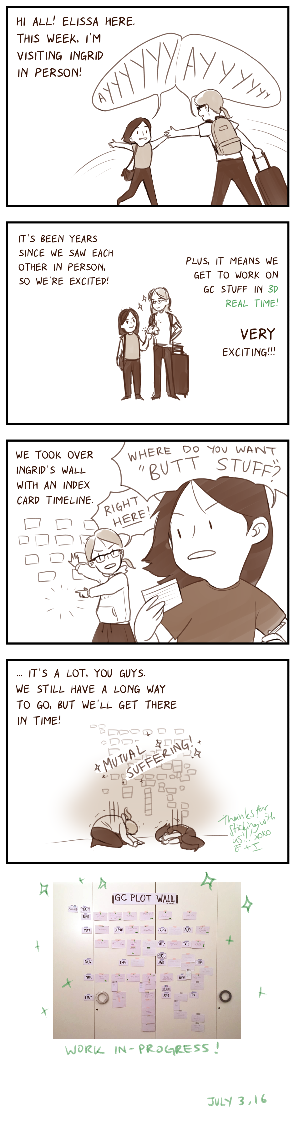 Elissa's visiting! And my wall is covered in index cards.