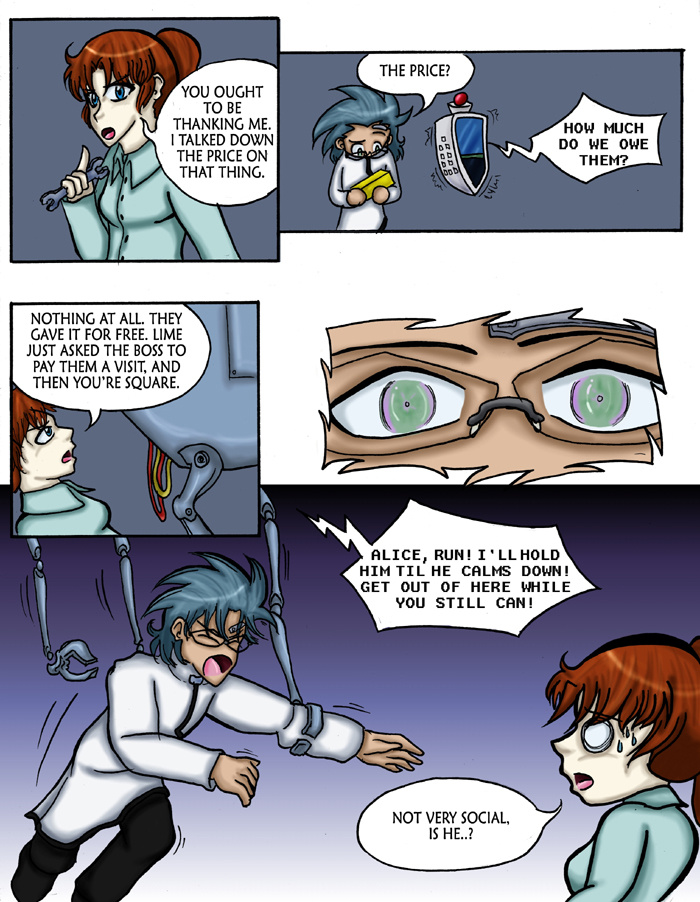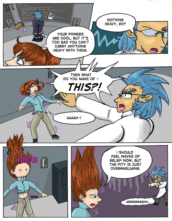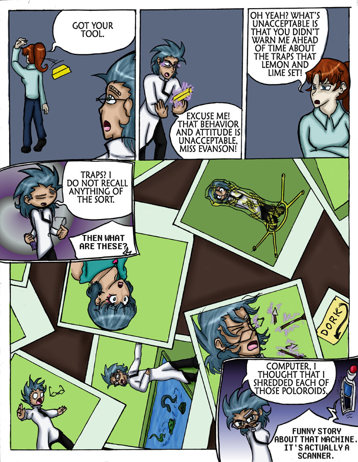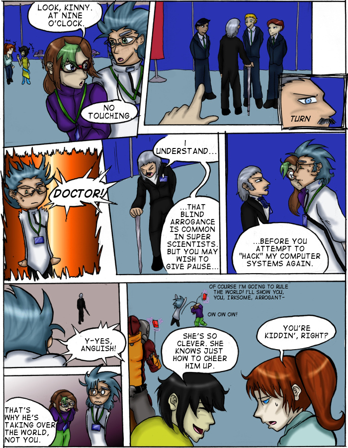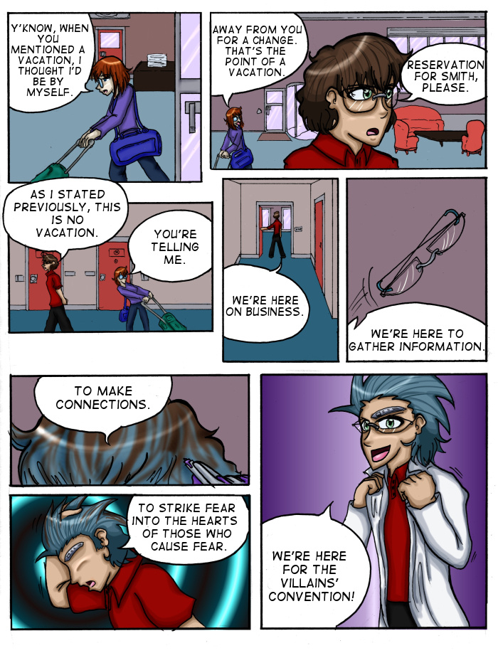 Evil Plan takes the superhero world and flips it, viewing things from the supervillain's perspective. The story follows Dr. Kinesis' journey on the road to world conquest. On the way, he'll have to deal with a troublesome AI, his unwilling friendship with crazy black-market dealers, and the possibility of romance with his second-in-command. And the superhero. Can't forget that guy.