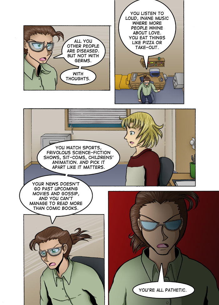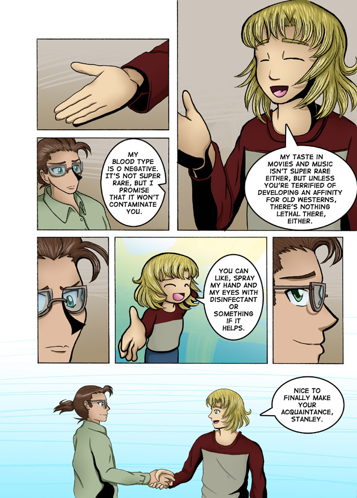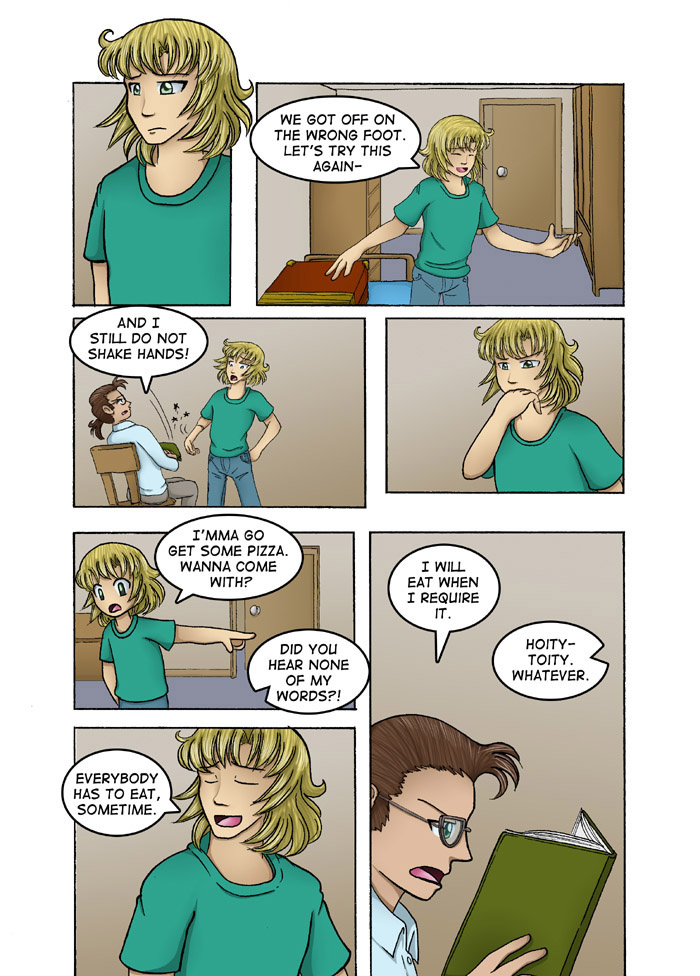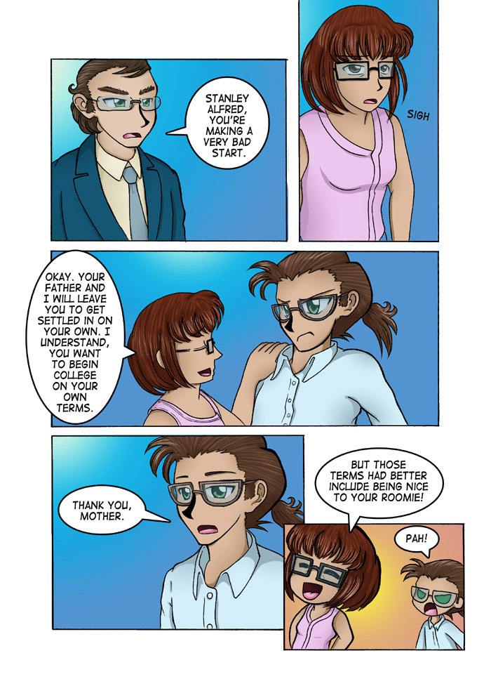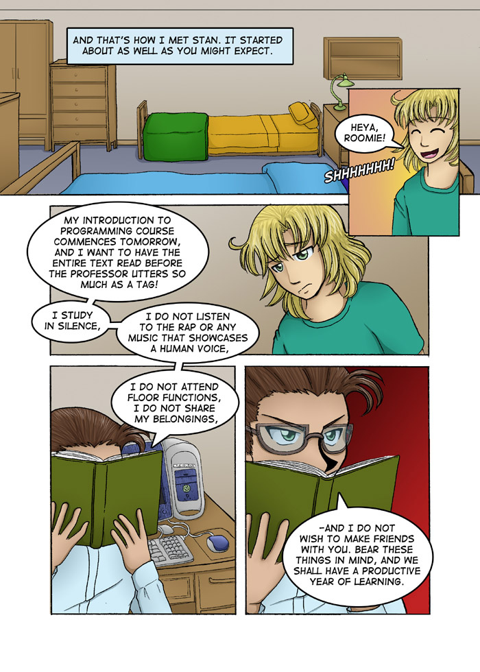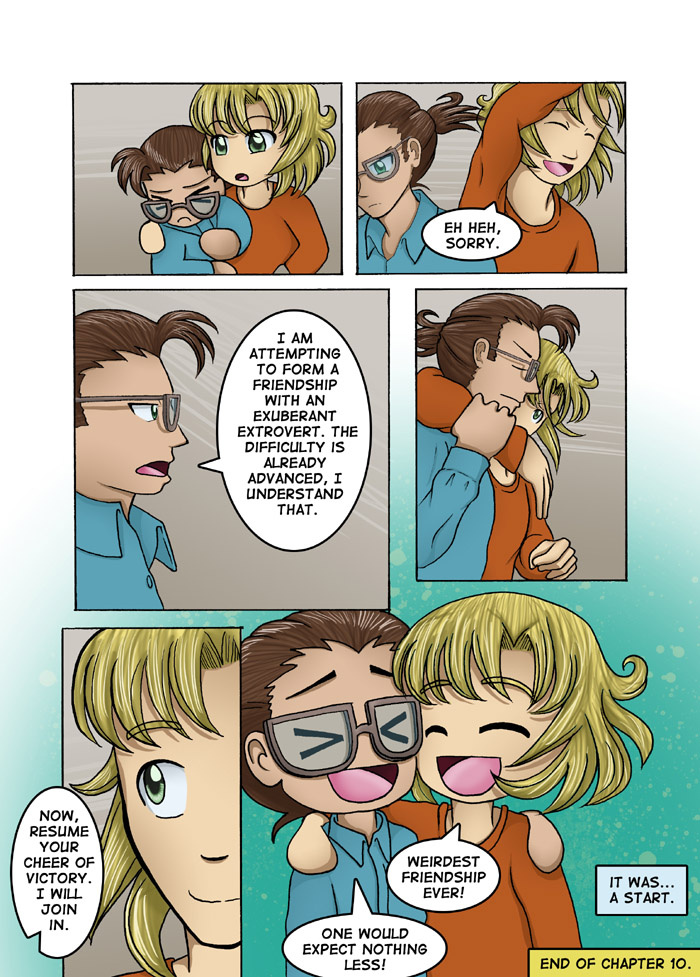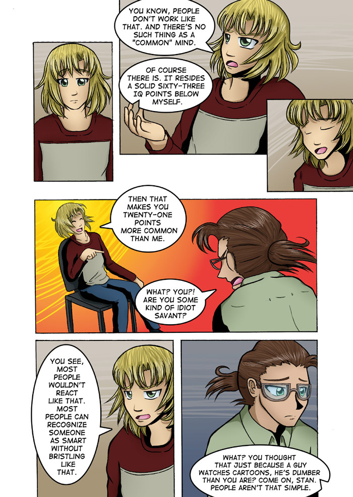 Evil Plan takes the superhero world and flips it, viewing things from the supervillain's perspective. The story follows Dr. Kinesis' journey on the road to world conquest. On the way, he'll have to deal with a troublesome AI, his unwilling friendship with crazy black-market dealers, and the possibility of romance with his second-in-command. And the superhero. Can't forget that guy.