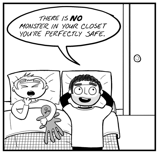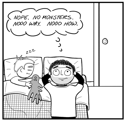 I'm pretty thankful that my son never believed in monsters his dad and I programmed it into his head since he was a year old. Just gotta get the lil tyke un-afraid of the dark. He's a pretty unique kiddo though he wants to Be a zombie dragon this Halloween ( gotta love the toddler stage XD)
