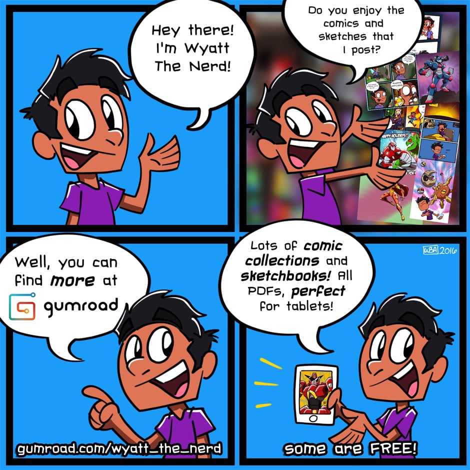 Like what you see here on Tapastic? There's MORE available on Gumroad with even MORE coming soon! http://Gumroad.com/wyatt_the_nerd