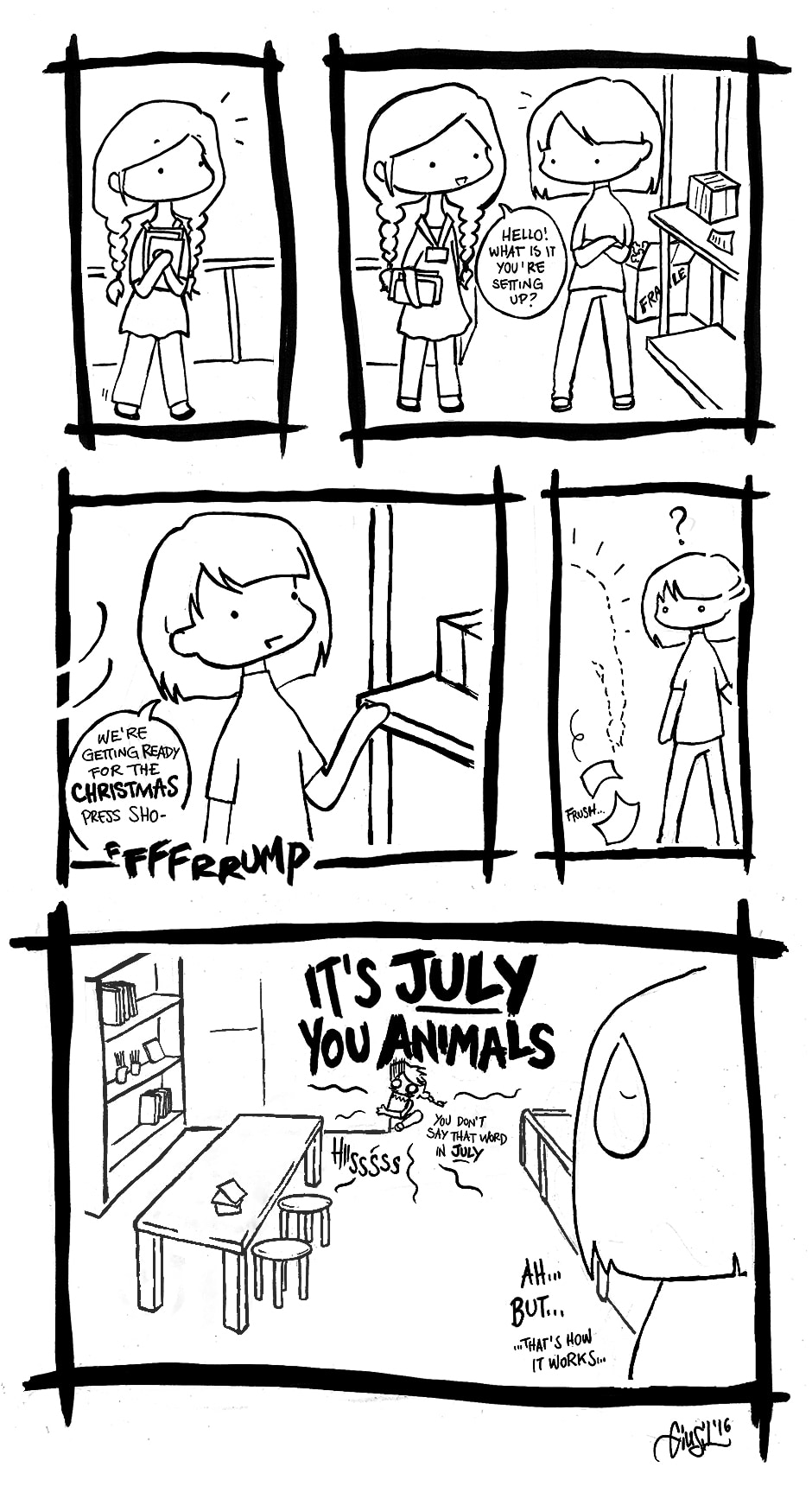 I started thinking of a way to express my real feelings about my job in a way that could be funny and harmless, and would also help me doodle more.. then I thought I could try to make it a little ongoing comic-thing. Let's see if it can work.