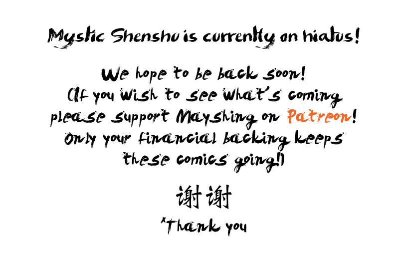 Sorry for the long absence everyone! If you follow our other comics or check Mayshing's updates you'd know currently we've been busy with the production of our Visual Novel game for E-Depth. This means all our comics, including Mystic Shenshu is on the back burner.
