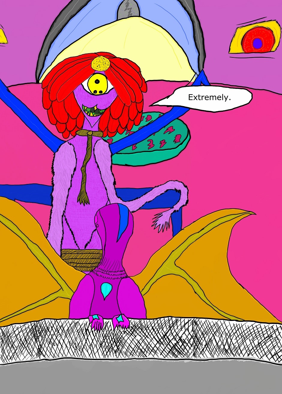 Dhalast is very young, very driven, very single-minded, very accomplished; at the juvenile age of five hundred years, she earns her first face-to-face meeting with His Badass Glorification, the primordial behemoth, ever-growing, never-evolving, that has ruled over The Rajaqweet almost since the birth of the universe.