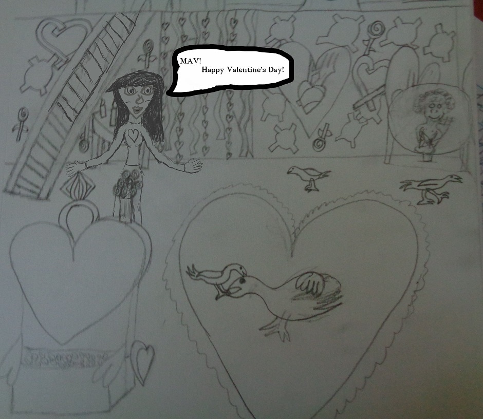Yooooo, because Hiding Heinrik is a multi-panel comic, it takes longer to finish a page than Hail to the Noose or Shithouse Maggots, so I don’t really have a backlog for this like I do for them. With finals fast on the approach, I haven’t had a lot of time to draw, so for the next few weeks I’ll be releasing this Palentine’s Day extravaganza. This first collection of panels is the only traditional page from this mini-cluster of non-chronological HH fun, but as of yet none of them are colored in.