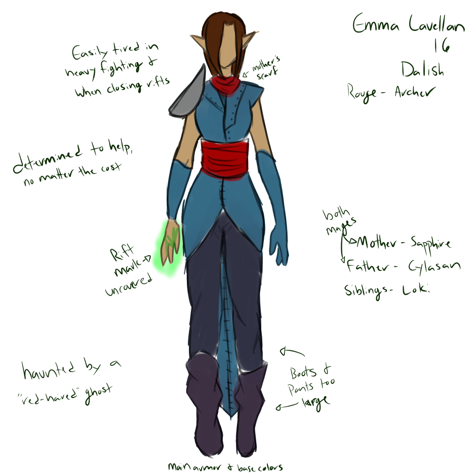 No page this week, sorry! A lot of stuff has been happening lately, so I haven't had much time for pages. BUT! I do have some character and design notes on Emma, Into the Darkness' main character!