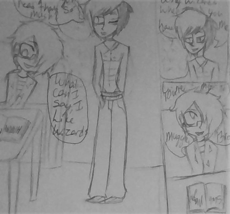 Eli loves Harry Potter, and Bro. Bro is his (not so)Little muggle. and sorry for picture quality. if you can't read it just comment about it and I can put what they're saying here.