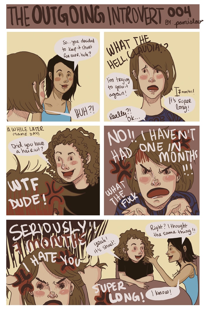 I've had short hair for a longtime (over five years, now, I think?) and whenever I try to grow it back it's super hard! Specially when everyone keeps asking if I just had a haircut.
