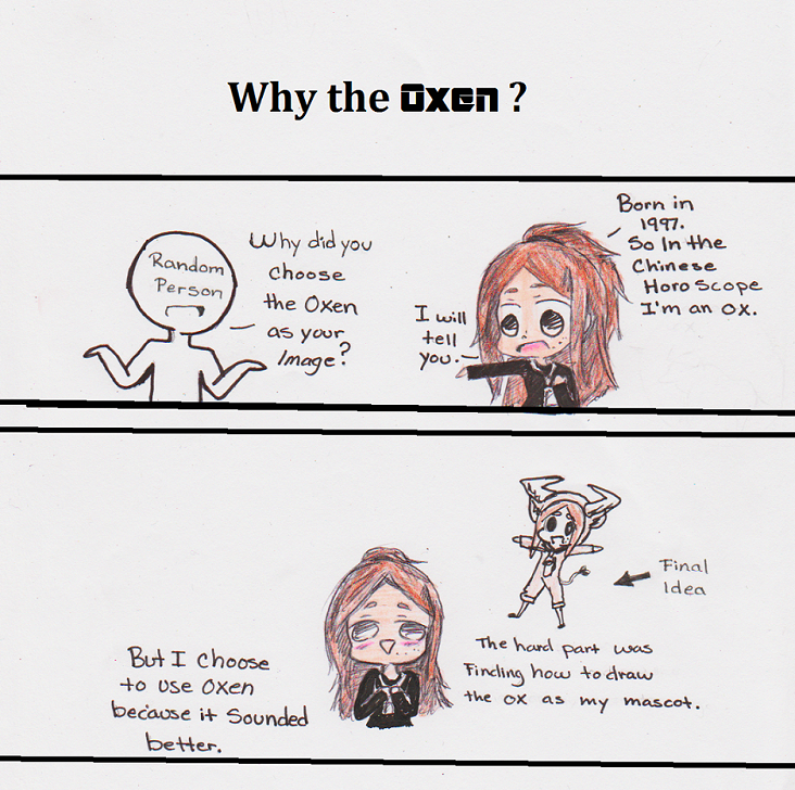 friends and others were asking why I choose a OX to represent me and this is why. 。^‿^。 ( decided to express it in drawing form)
