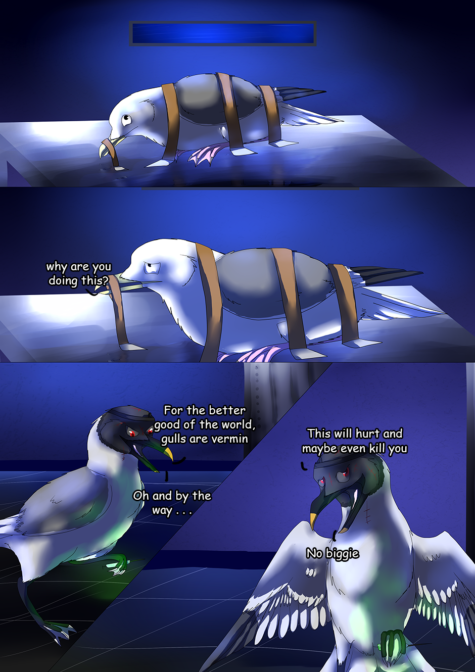 two young gulls by the names of Mike and Ali have an ordinary childhood, but that abruptly ends when young gulls are heard to be missing, supposedly for animal testing to make gulls less of a nuisance at the beach. What will happen next? Find out in "The Origin"