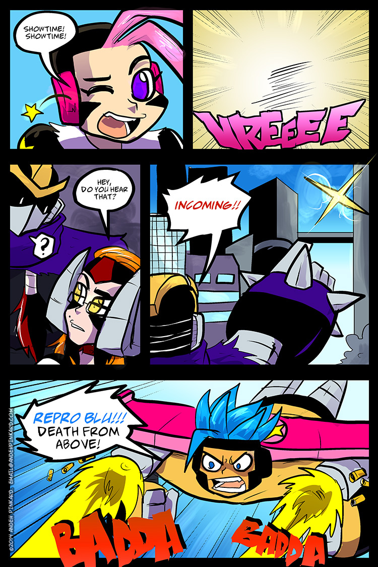Damn, syndicate's ladybot uses glasses - can't believe it took me reading up to this episode to notice it. Boobs, horns and glasses.... talk about a full fetish package. :D