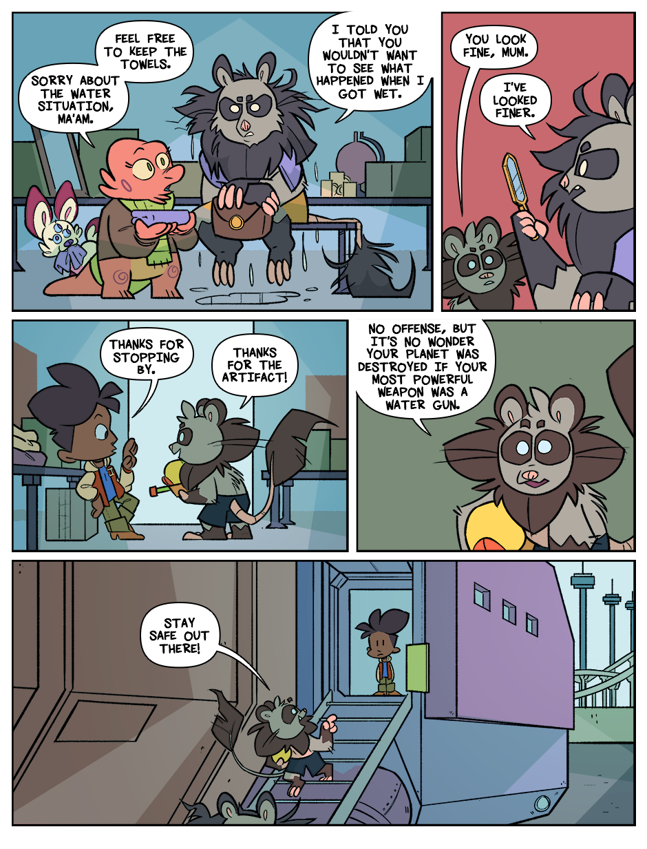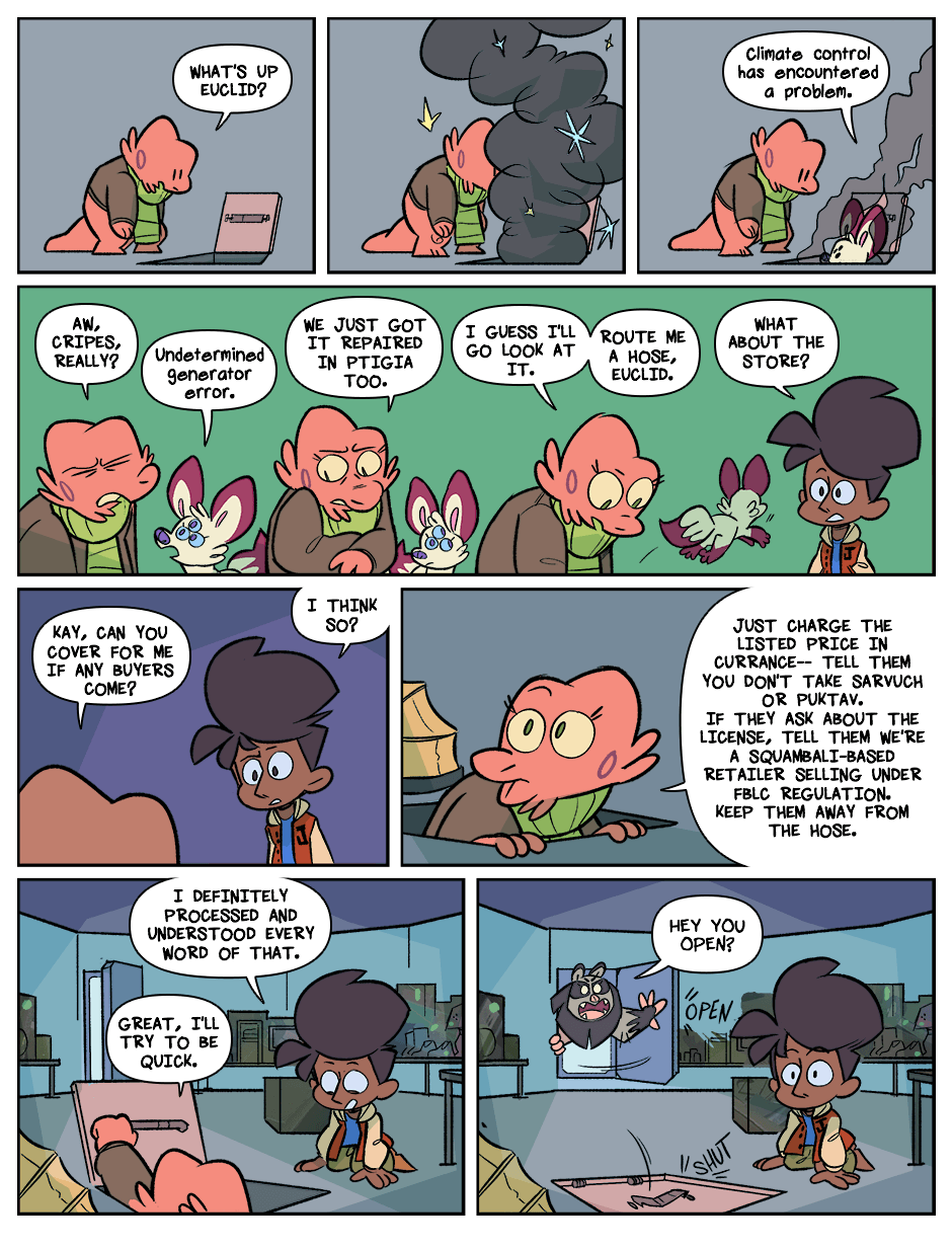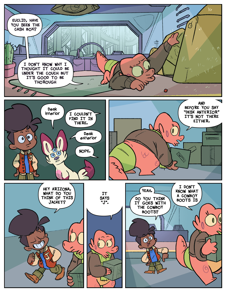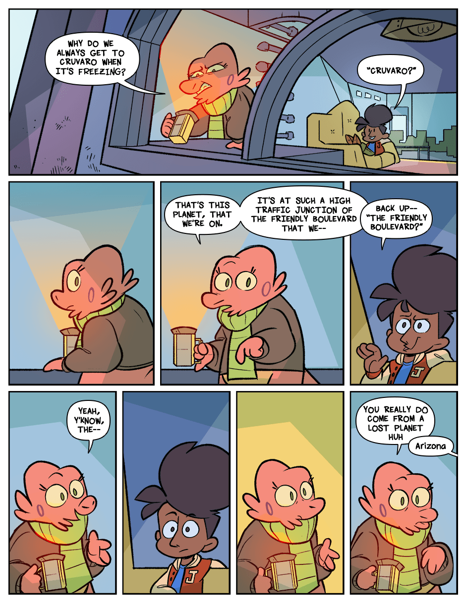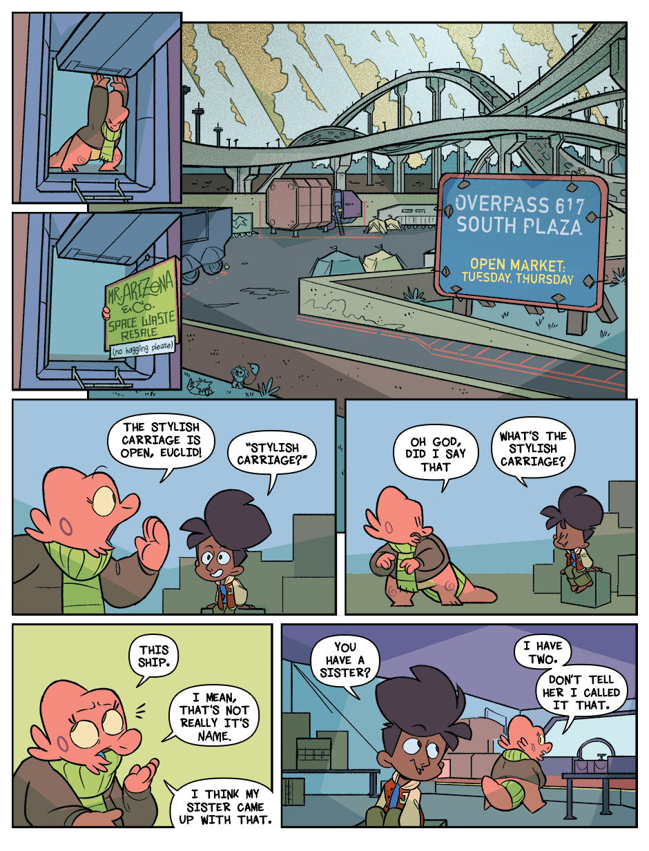 When the Earth just kind of explodes, the lone human survivor Kay becomes the world's youngest space debris. Adrift in the void, she's picked up by Arizona, an alien space-waste collector, and Euclid, his erudite pet. Together in a galaxy full of alien life, they get into stressful situations, tell jokes, and fall down sometimes.