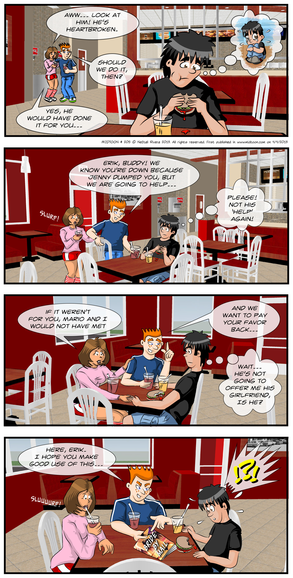 Erik, our main character, has been depressed because his love life, well, kind of sucks. He recently broke up with Jennifer (in a previous season) and his friends Mario and Anita come to help.