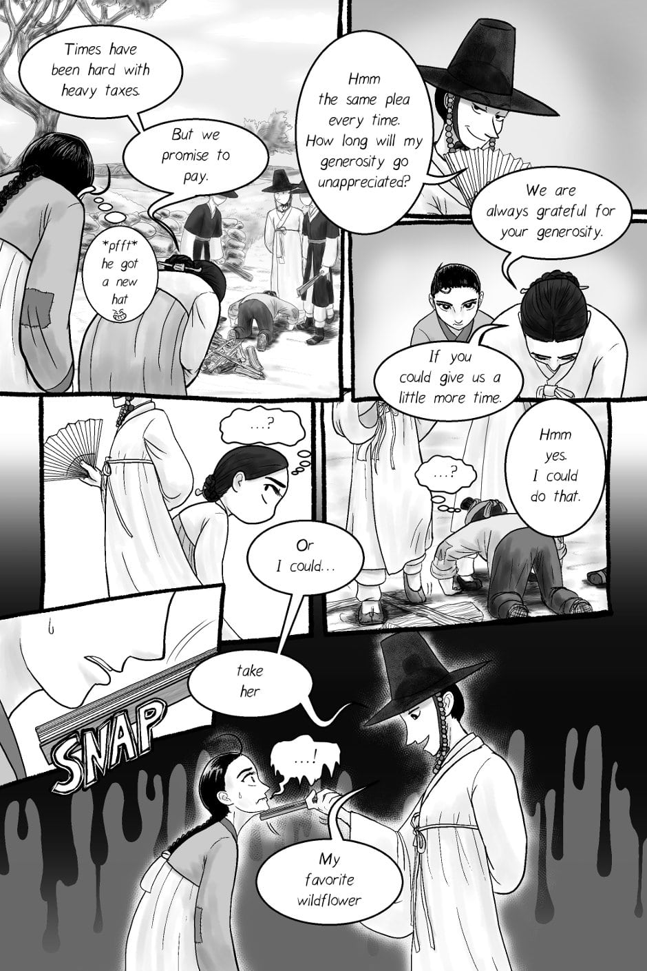 I think I've had to change how to compose the middle panels. Even I wasn't sure what to do with the background on the last bottom panel.