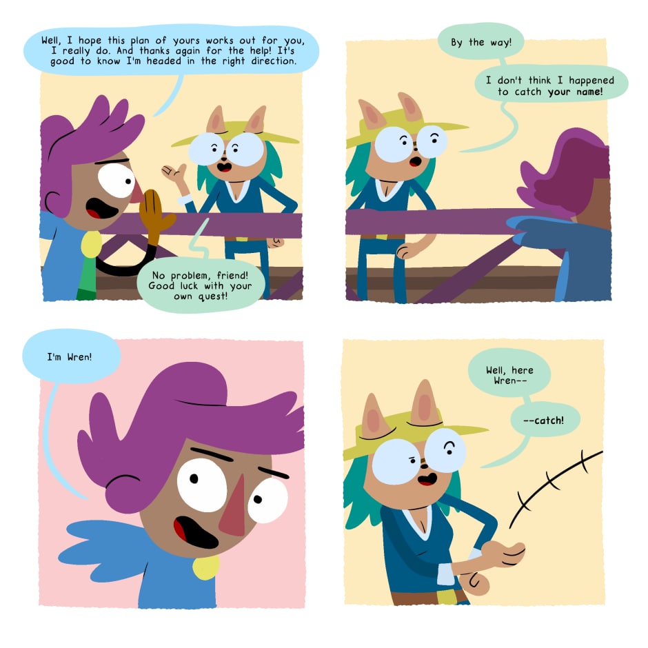 Wren is a novice adventurer looking to get started on the first great quest that will put her name in the history books-- the only thing is, she has no idea where to start!