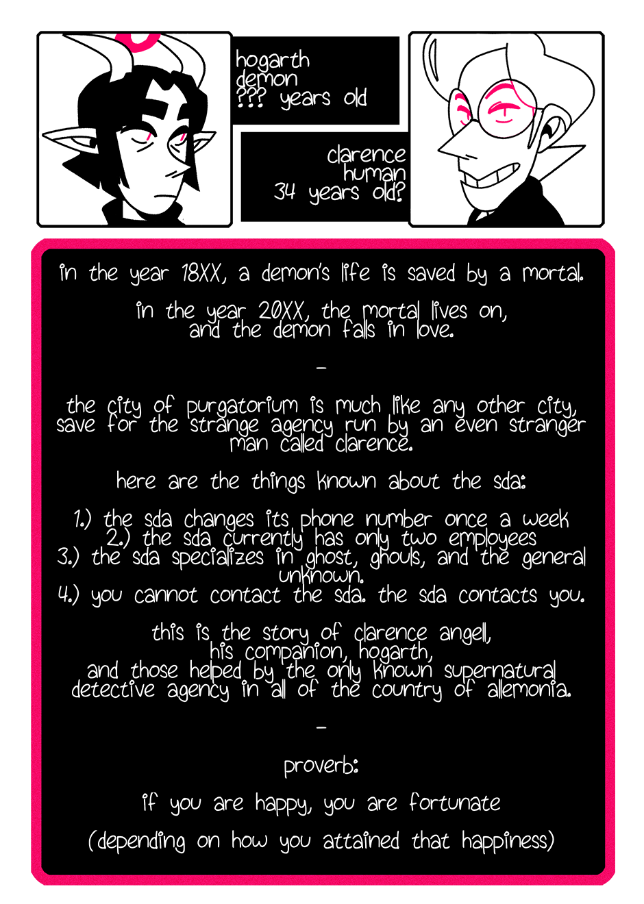 This story follows the clientele of Clarence Angell and his companion, Hogarth.