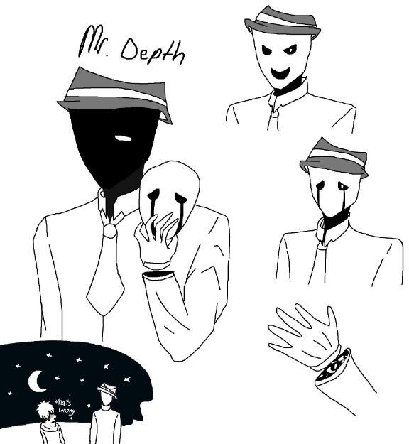 hes an alien a being from another place unwelcomed to human kind hes never been to earth and his only chance of survival in this planet is a 12 yr old boy which is also gonna be a new oc cause im planning to make a new comic future comic series after im done with the first chapter of daisuke which would be a total of 60 pages then ill start working on this one the alien known as Mr.Depth has to wear fake clothes and gloves and a fedora with 2 sets of mask and a suit so no one would expect him to be an alien but people think of him as a scary pedophilic criminal since hes a tall thingy with a small little boy imagine that in public so thats a problem XD