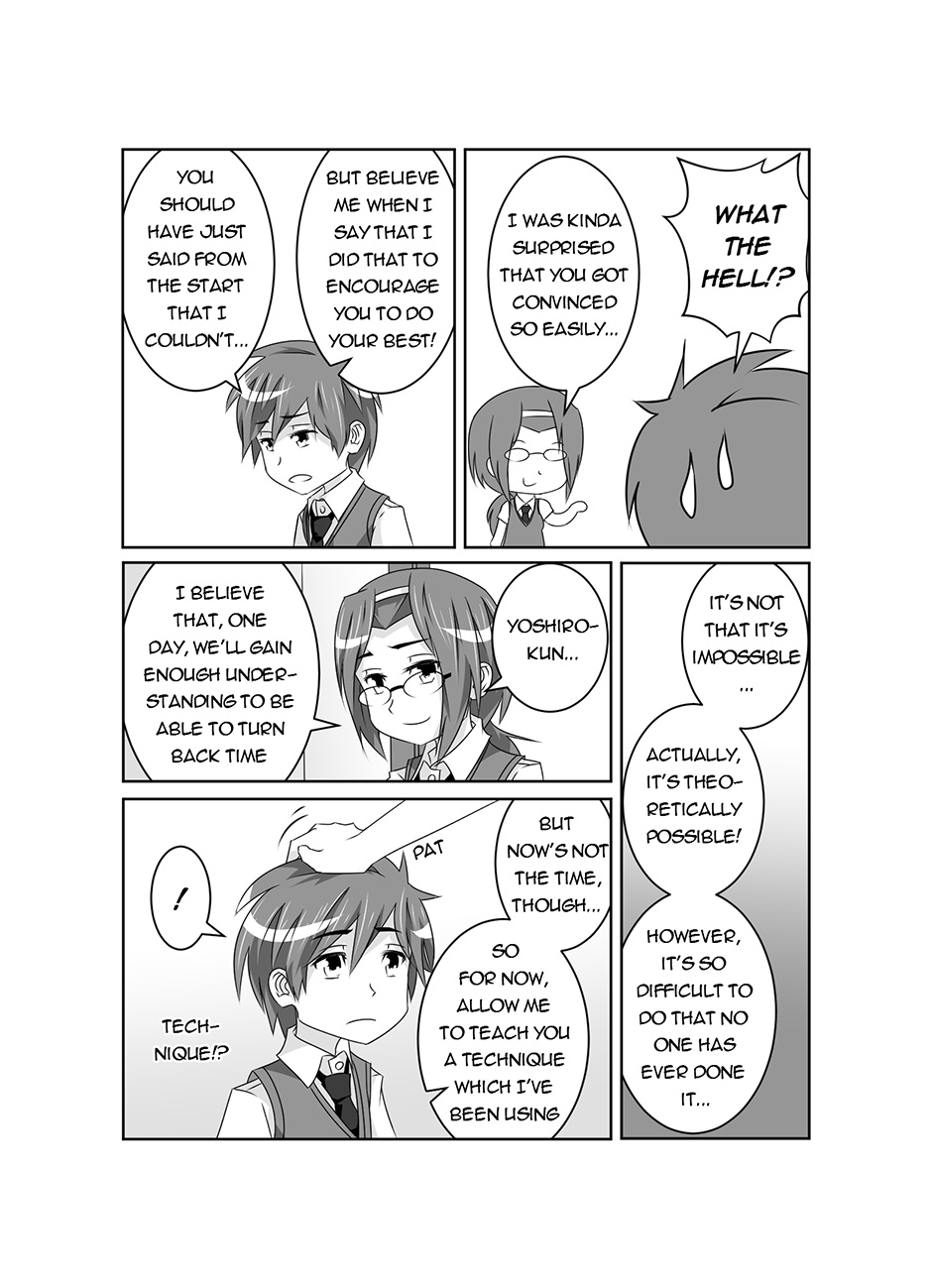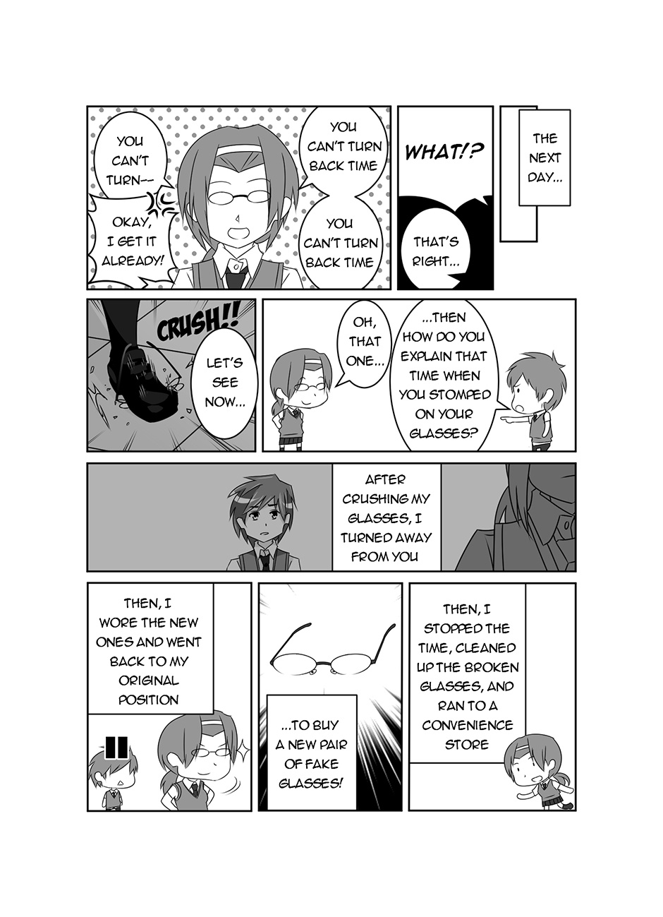 Pause is a story about a boy, Yoshiro Koizumi, who can freeze time whenever he wants to. When he suddenly meets a girl who is unaffected by his time-freezing powers, his peaceful high school life is thrown into chaos as she discovers his dark secrets which Yoshiro only shows when time is frozen.