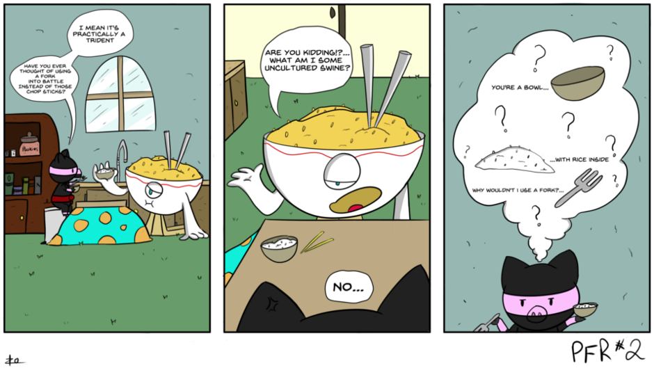 This is Pork Fried Rice! a ninja pig named Pork and a samurai bowl of fried rice named….Fried Rice. Living in a world of food people..or Fooples!?..maybe not ^_^;;