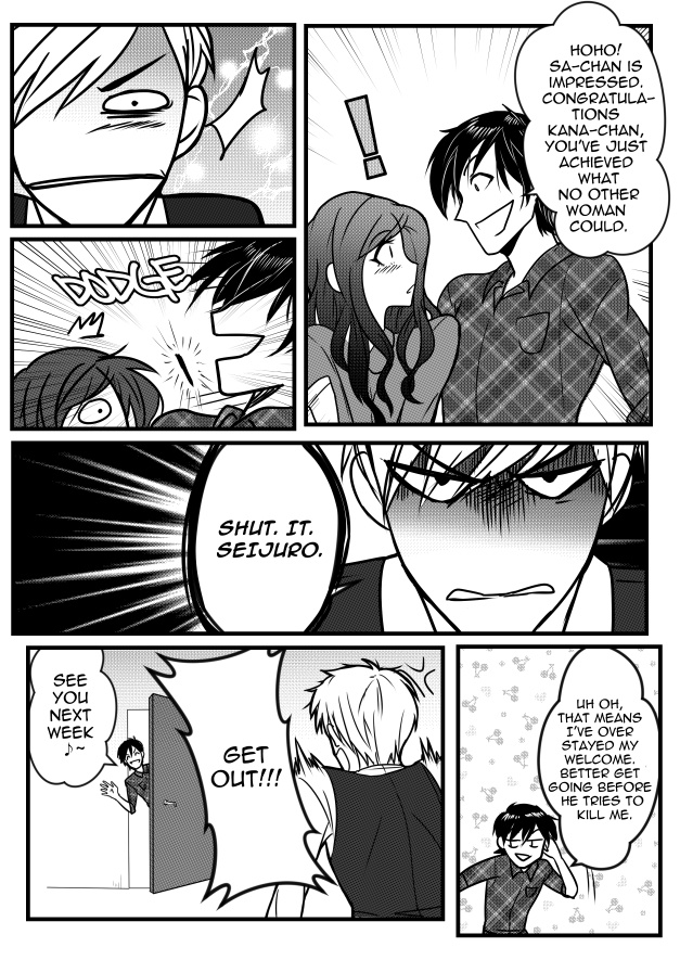It's so funny how Sei dodged the stapler while smiling like he knew something was gonna get thrown at him. Also, im shipping Sakuya and Sei with or without parental permission