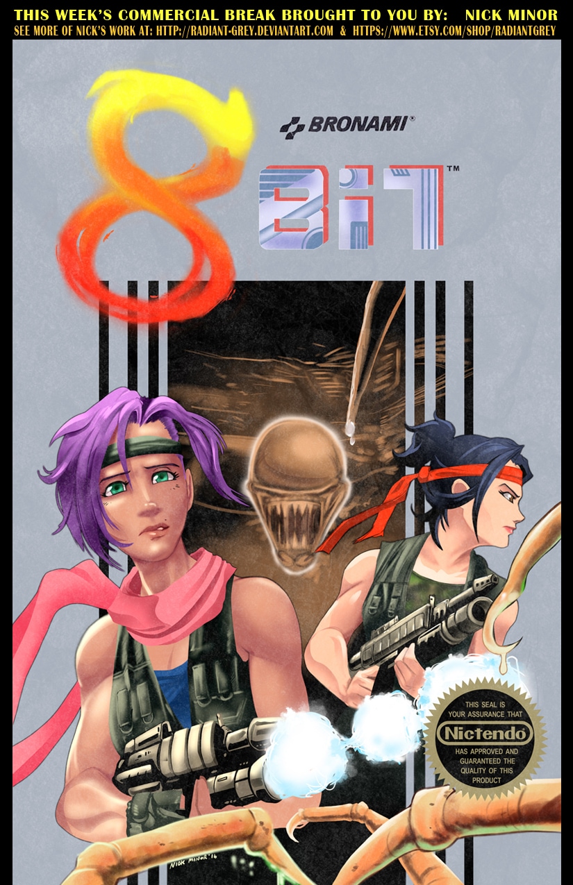 8-Bit is inspired, in part, by Saturday morning cartoons of yesteryear. I wanted to do something that had the feel of watching cartoons on Saturday morning while eating a big bowl of cereal. I remember the commercial breaks were almost as good as the show, because you knew you were about to find out about a cool new toy or delicious snack. Once each month I will feature a fake commercial/ad done by a special guest artist. If you are interested in participating, feel free to drop me a line wil.woods.art@gmail.com