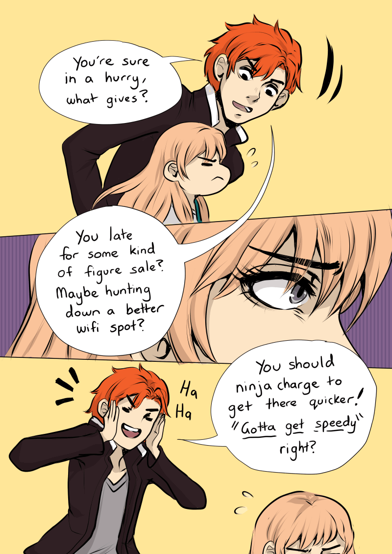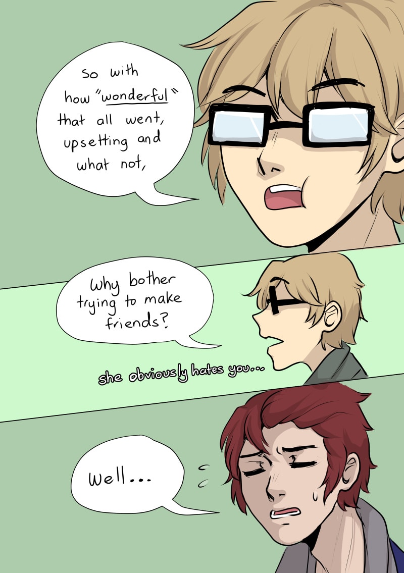 Even with his attempts and advice from friends offline and online, he hasn't been able to make any progress to getting to know the mysterious and grumpy blonde who seems more invested with her shows and online world then hanging around for conversation with anyone not on the other side of her laptop screen.