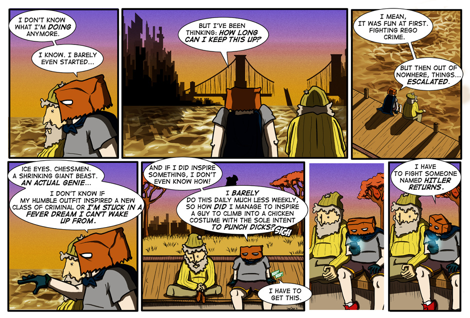 He really sounds sad. It's not like Batman where he has money and Alfred to fall back on. DPA just has himself and a near comatose hobo.