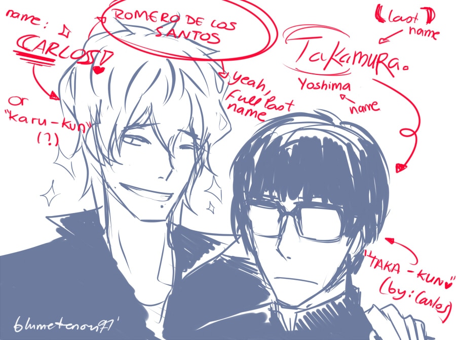 Bien, aquí traigo extra: Nombres, apellidos y ¿Apodos? Bueh, no importah :v ...Mi fav es...¡TAKATAKATAKATAKA...! P.D.: Sorry, Takamura (?) P.D.2: La mano de Carlos...