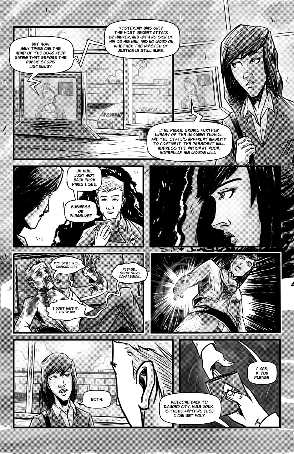 Fresh from the bombastic introduction of both Warren Harker and DOGS Director Towser, yet another new person enters the fray. So who is Miss Roux? Well, like Harker, she appears to have an agenda that involves bodies dropping, but her approach seems far more subtle and personal. Perhaps we'll learn more about her later. Until then, there's a lunch break about to end…