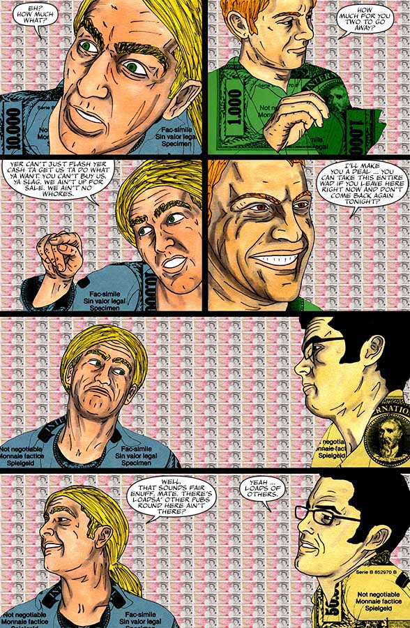 "Nothing-Men" utilises a wide range of unconventional materials that you wouldn't usually find in a comic and incorporates all kinds of found/everyday objects. Throughout "Nothing-Men", a range of different artistic techniques and approaches are employed.