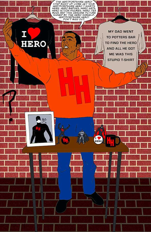 The comic follows many of the town's absurd residents whose boring, mundane and unexciting lives are suddenly turned upside-down with the arrival of a mysterious nocturnal vigilante: “The Hertfordshire Hero”.