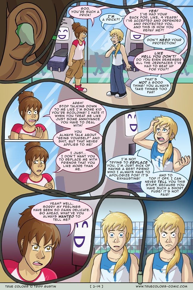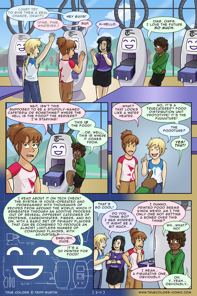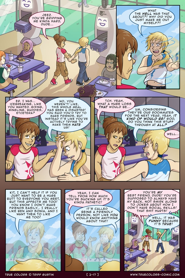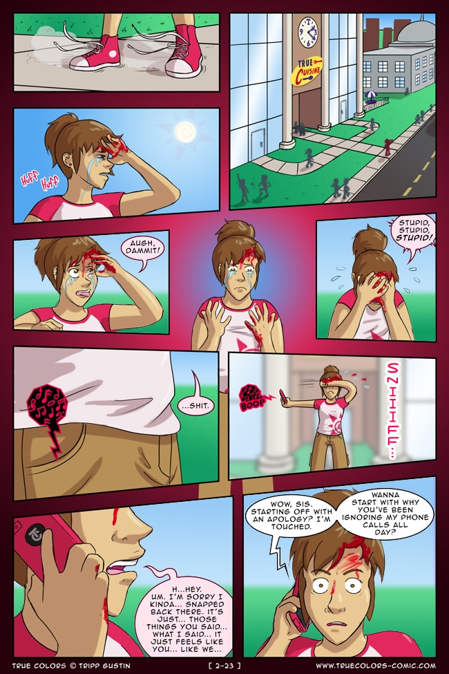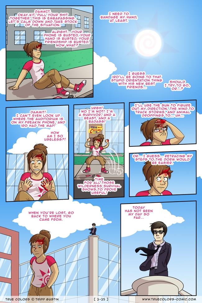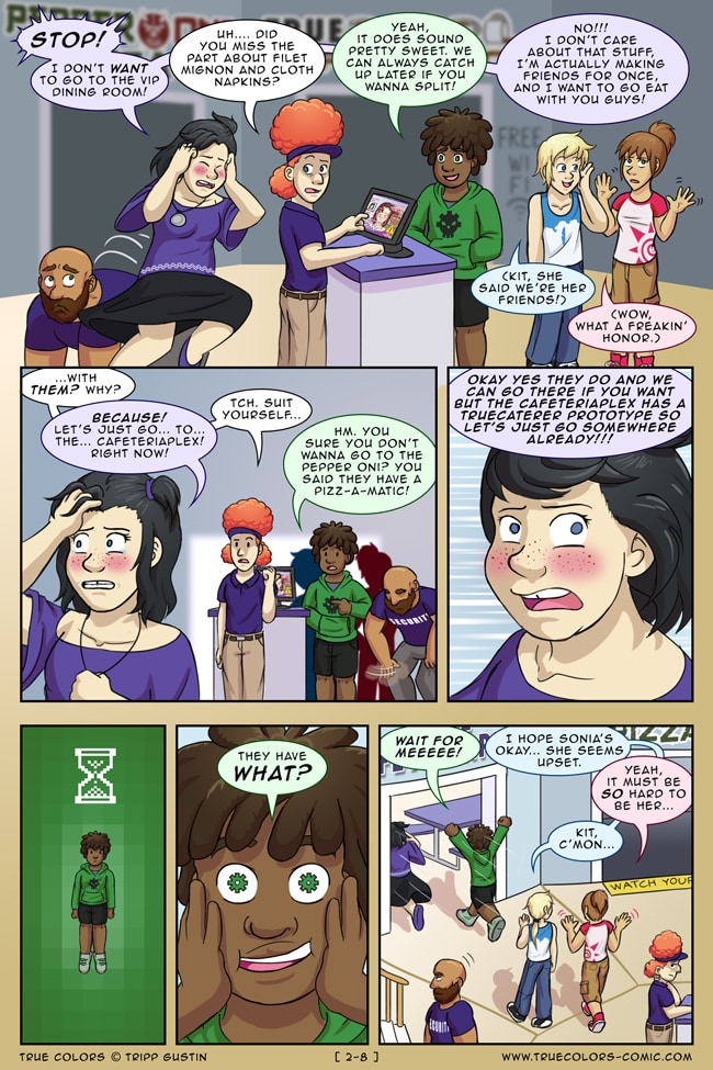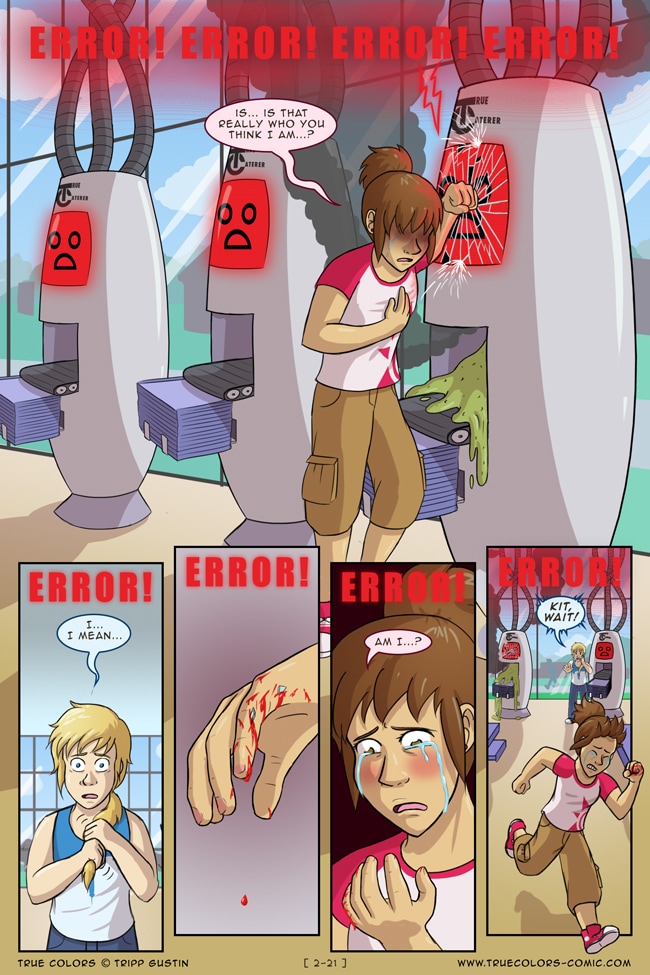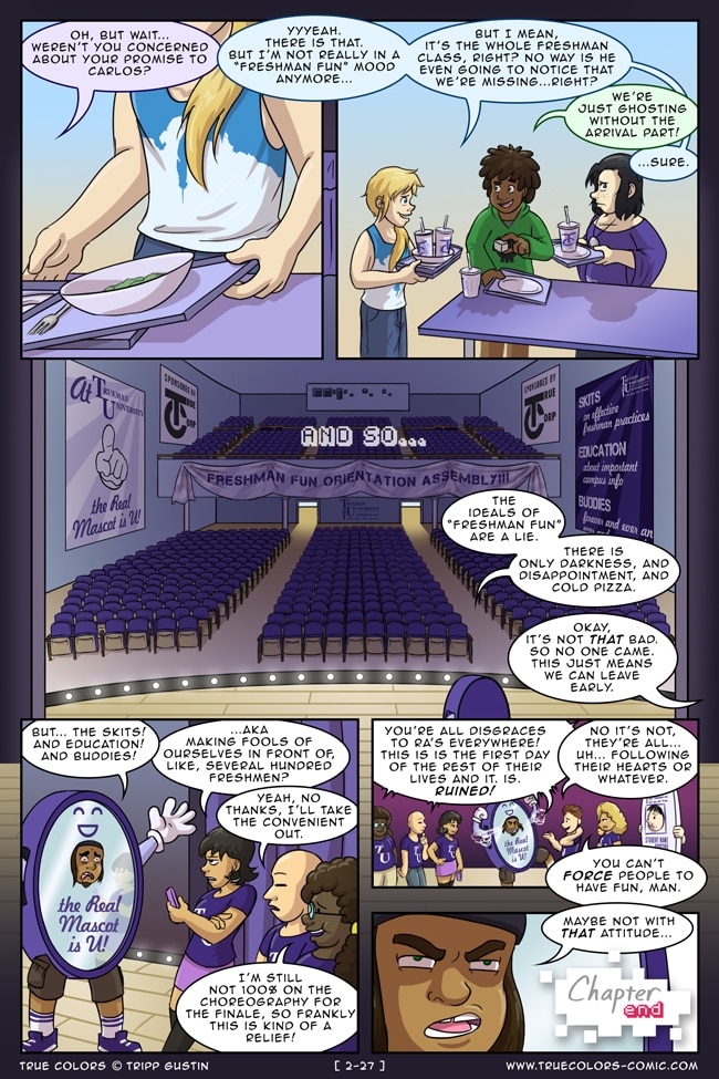 True Colors is a comedy, drama, and coming of age story webcomic about four kids on their very first day at Trueman University... a place where the friendships are fresh, the bridges are flammable, the parent corporations are ominous, the resident advisors are too much, and being true to yourself might not be all that it's cracked up to be.