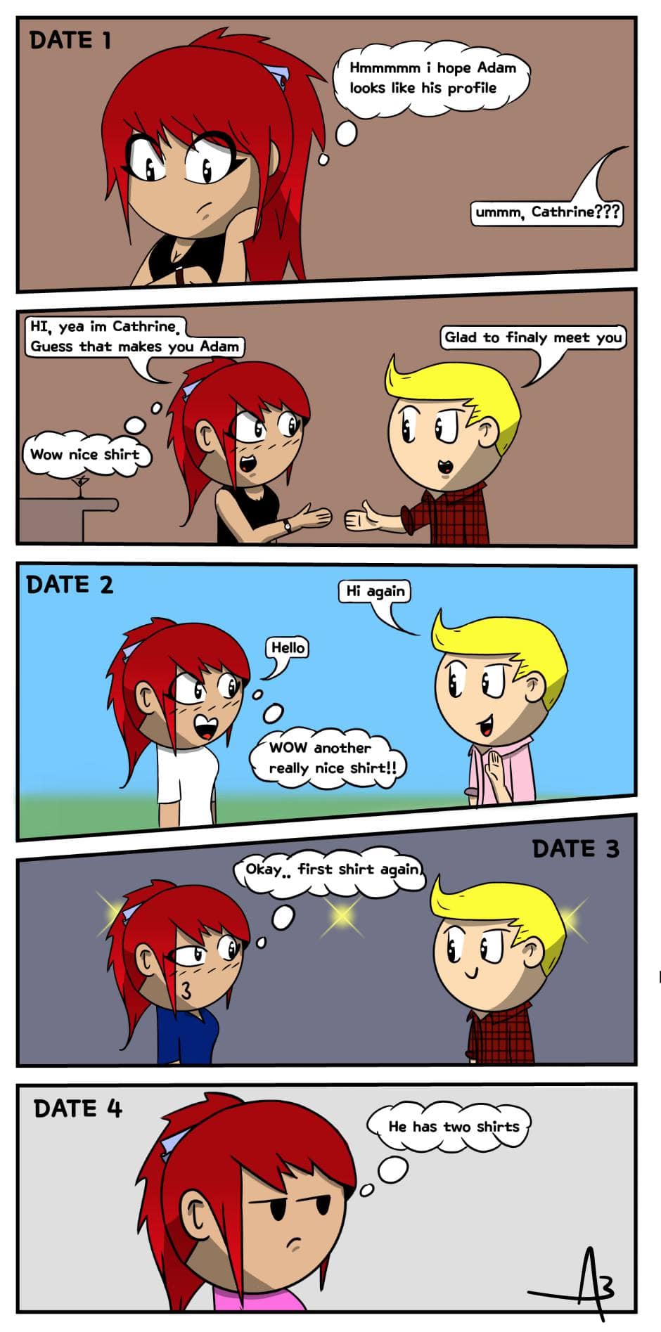 The shirts in this comic are actually based off shirts the artist owns, and yes they are his only two nice shirts.