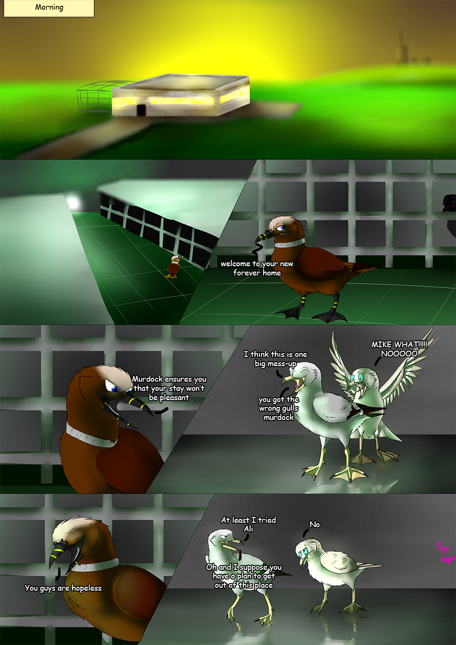 two young gulls by the names of Mike and Ali have an ordinary childhood, but that abruptly ends when young gulls are heard to be missing, supposedly for animal testing to make gulls less of a nuisance at the beach. What will happen next? Find out in "The Origin"